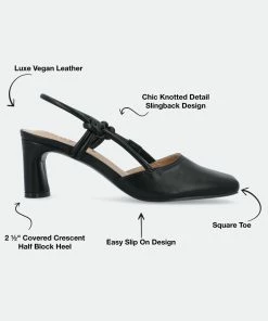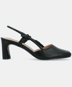 The Margeene block heel heels from Journee Collection can seamlessly take you from work to a night out on a date. Their luxe vegan leather, sling-back strap, padded insole, and pull-on style will leave you looking and feeling your best. As a bonus, their square toe will pull the whole outfit together.