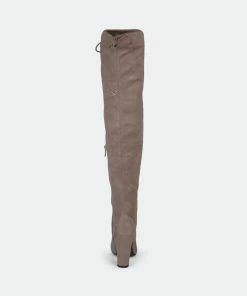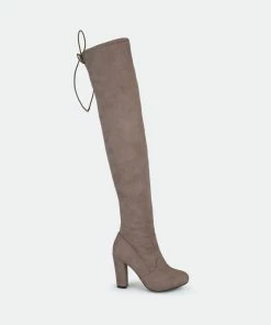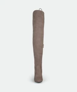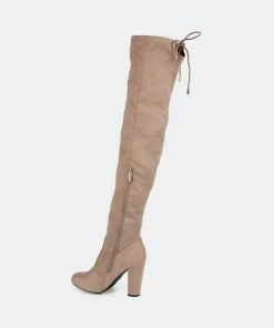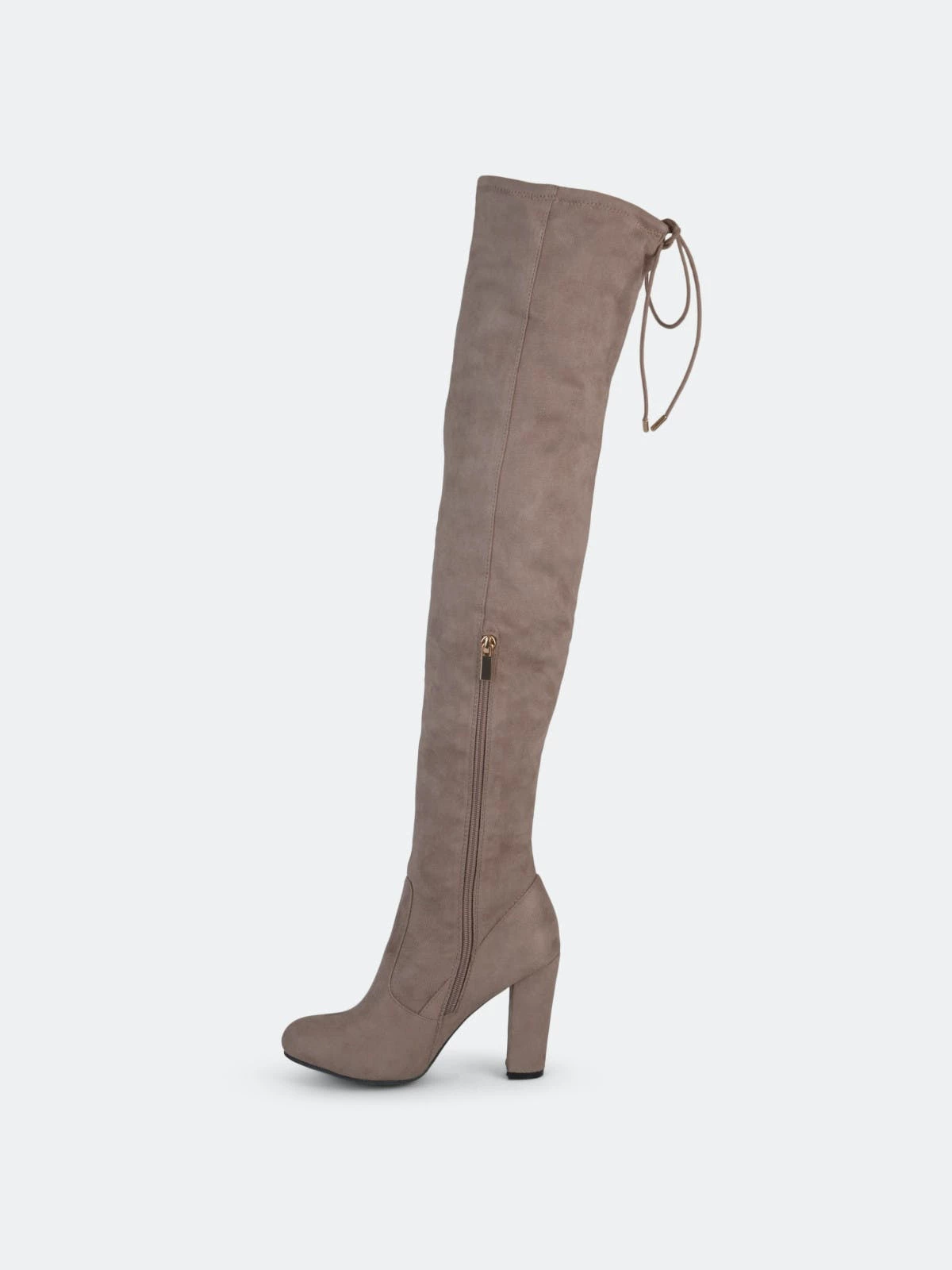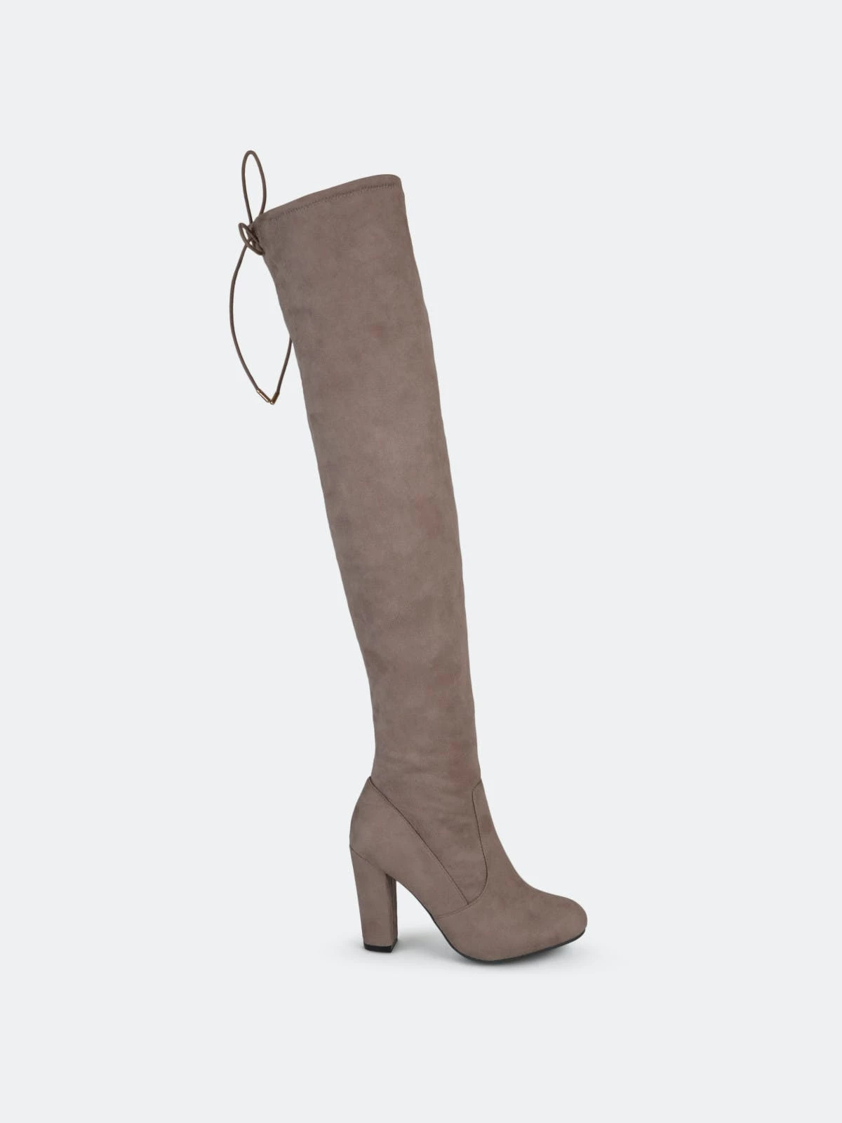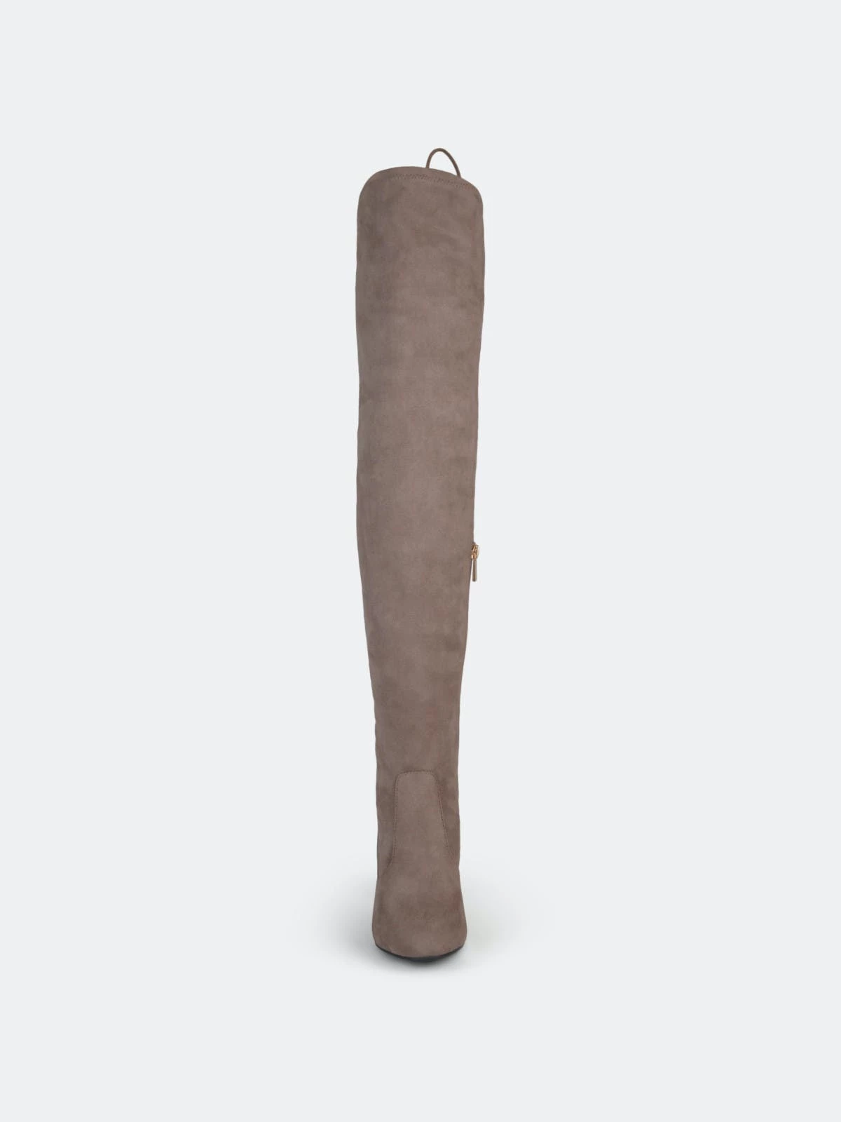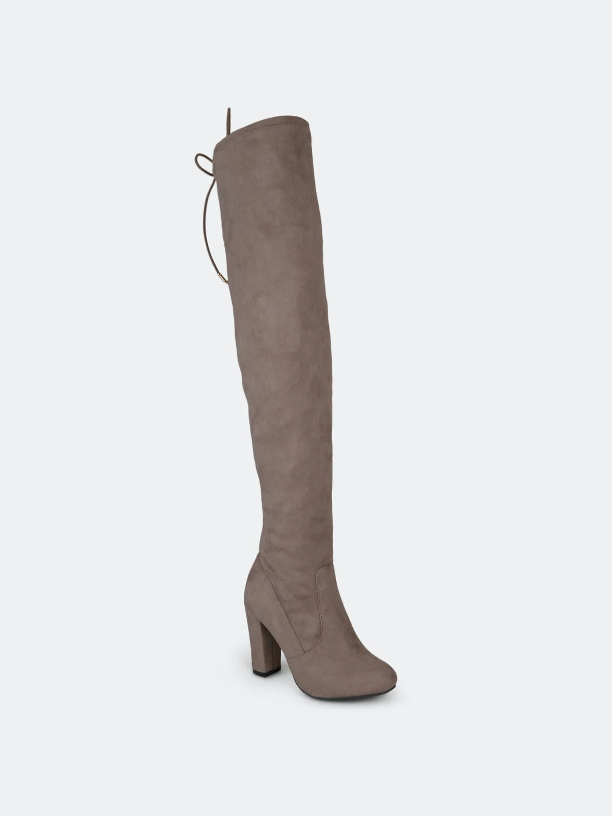 Step into the chicest style this season with over-the-knee boots by Journee Collection. A structured pump design shows off sky-high faux fabric shafts that rise over the knees. Round toes and chunky high-heels finish the look.Heel Height: 3 3/4-inch. Heel Type: Block Heel. Platform Height: 1/2-inch. Shaft Height: 24 inches. Calf Circumference: 11 3/4 inches. Top Circumference: 14 3/4 inches. Shoe Width: Medium. Closure Type: Inside Zip. Toe Style: Round. Lining: Fabric. Upper Material: Faux Suede. Outersole Material: Faux Suede over Synthetic. Footbed: Padded. All measurements are approximate and were taken using a size 6. Please note measurements may vary slightly by size.