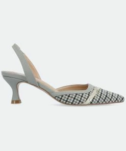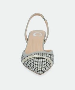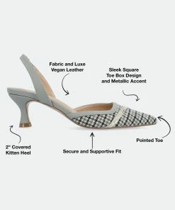 An iconic silhouette topped with vintage details, the Nellia heel by Journee Collection. This darling kitten heel features houndstooth printed fabric contrasted with luxe vegan leather accents for a retro look. A stretchable slingback strap holds you in place, and a padded insole cushions your step. At Journee Collection, our pump styles will let you go from a fun night out with the girls to kicking back and relaxing at the end of the night without any trouble.