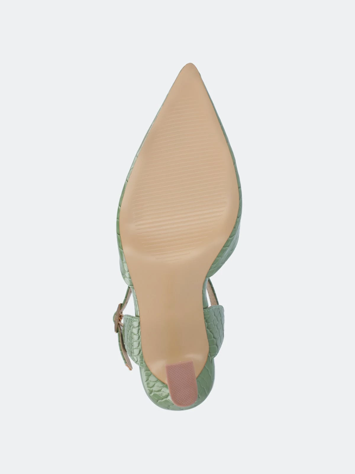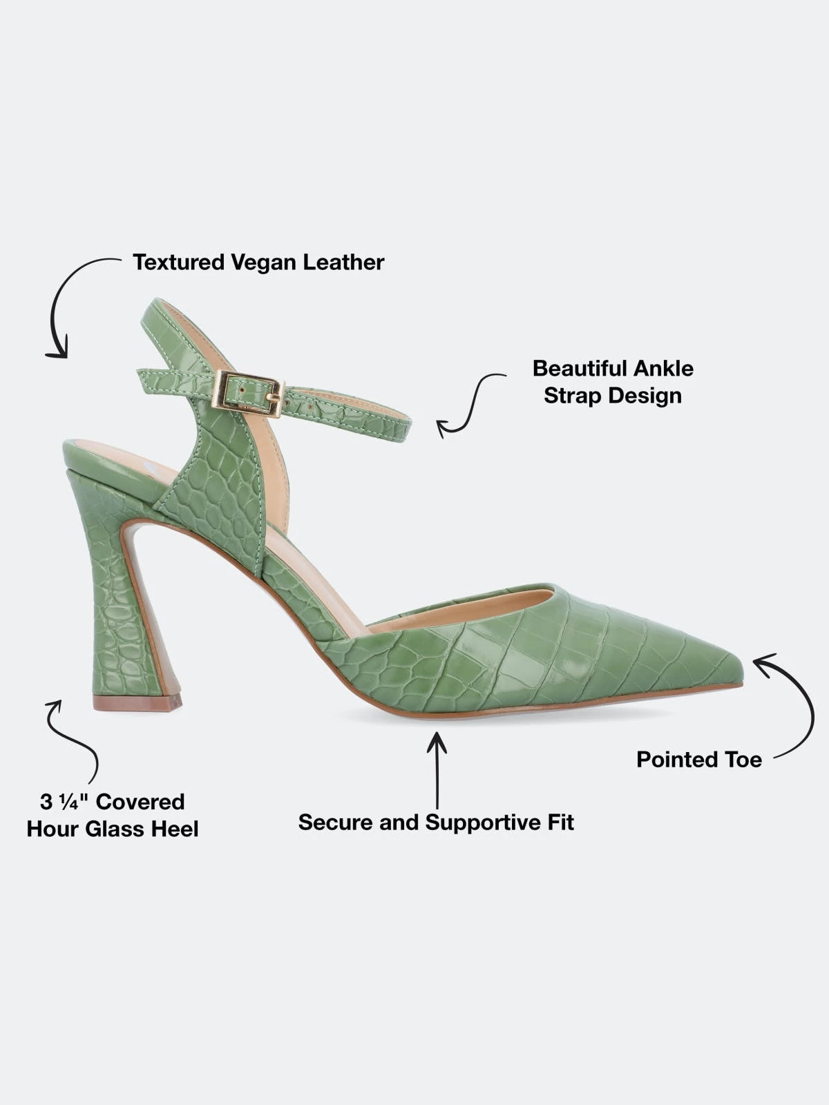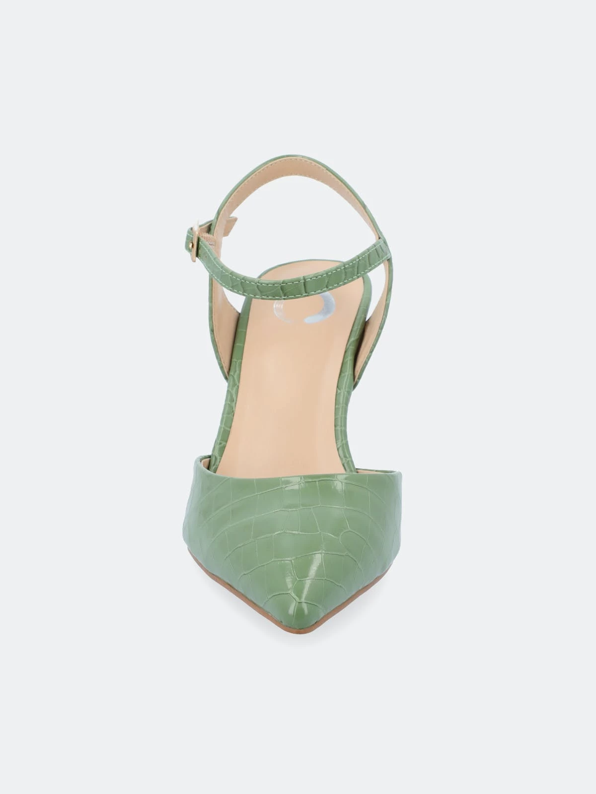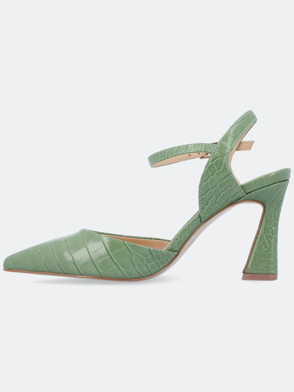 This timeless silhouette just keeps getting better, the Nixey heel by Journee Collection. This pointed-toe pump heel features vegan leather uppers with luxe croc texture throughout. A padded insole adds a little cushion, and a charming buckle strap holds you in place. At Journee Collection, This pump styles will let you go from a fun night out with the girls to kicking back and relaxing at the end of the night without any trouble.