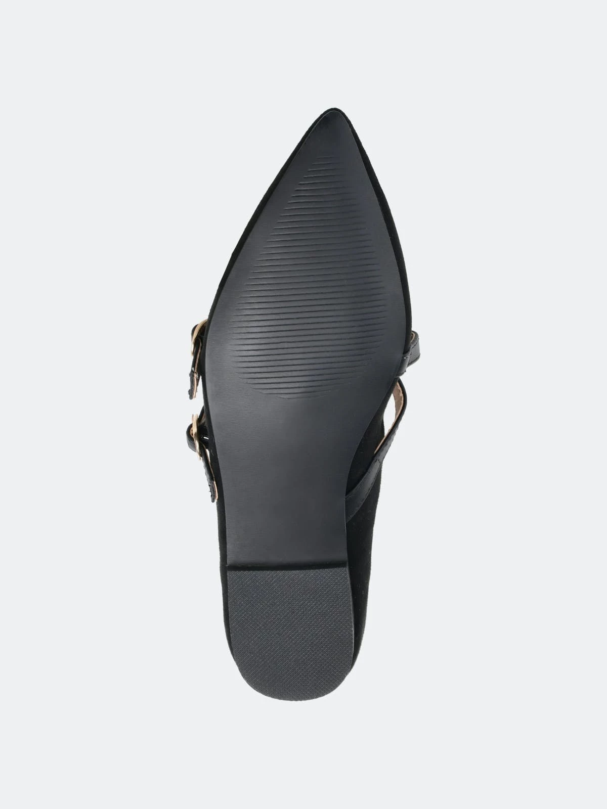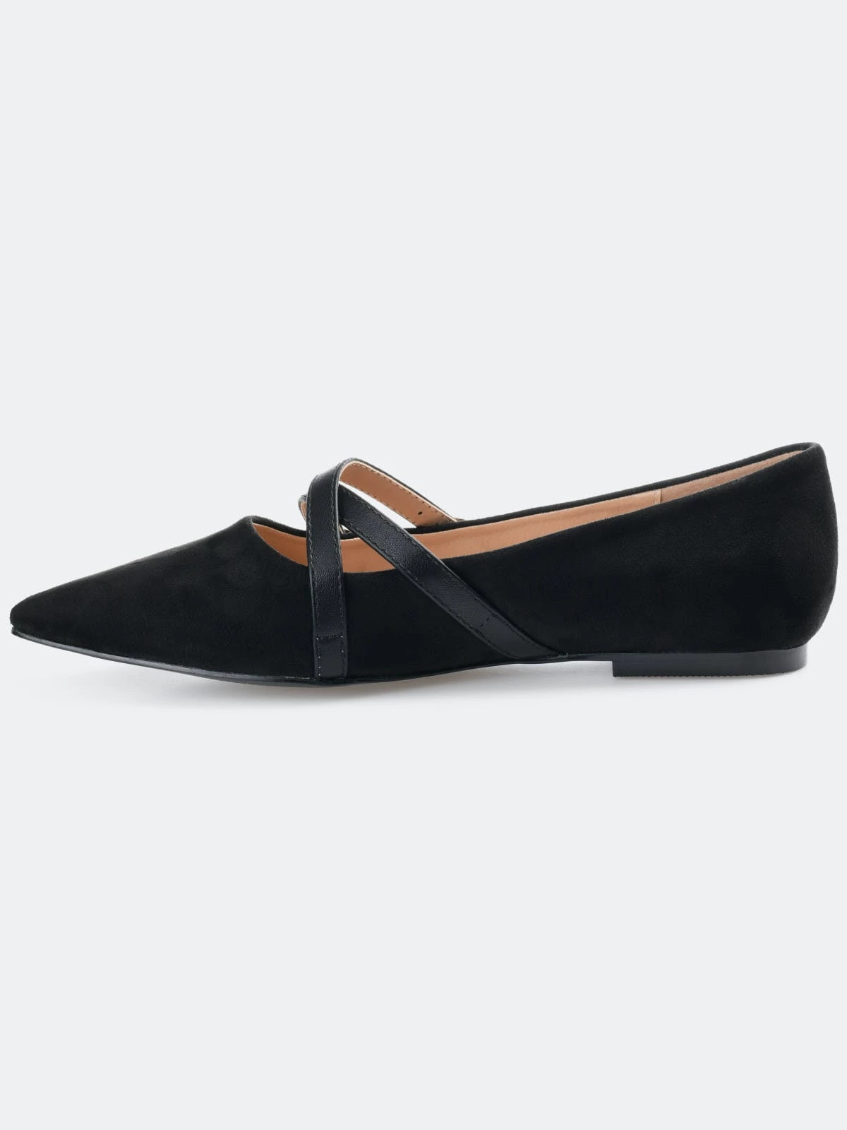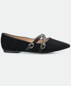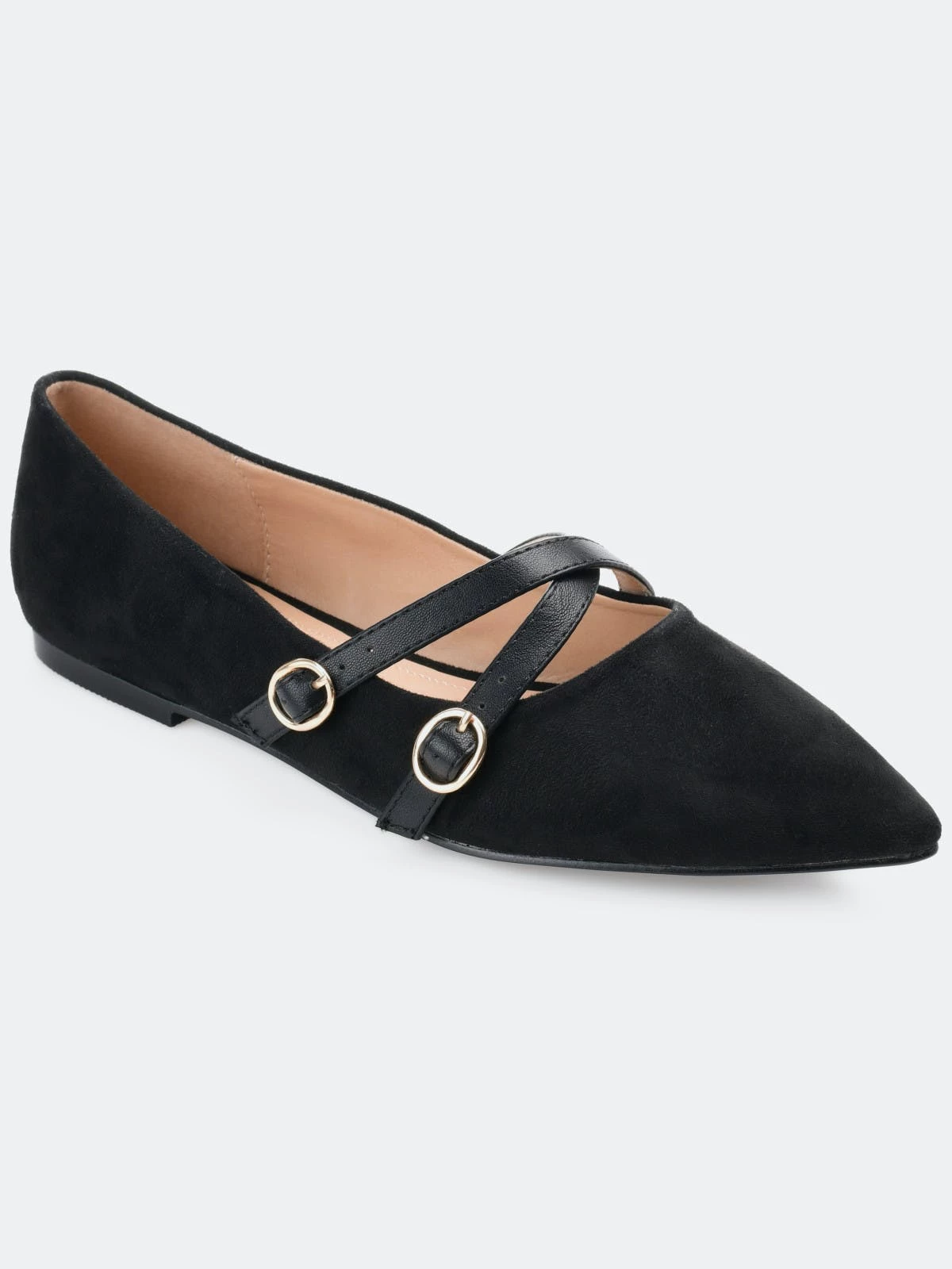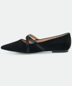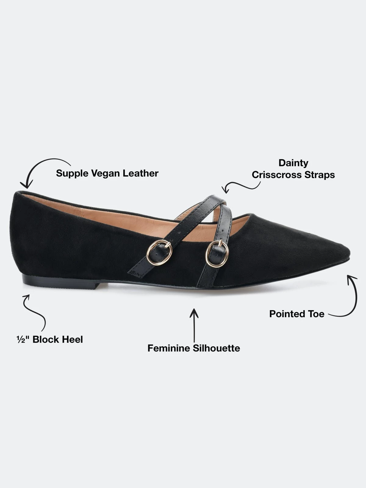 Brace yourself for a flood of compliments in the Patricia flats by Journee Collection. A padded footbed and soft vegan leather uppers shaped this comfortable flat. Crisscrossed buckled straps add a modern twist, and a pointed-toe perfects the look.Heel Height:1/2-inchHeel Type: Block Heel Platform Height:Flat-inchShoe Width: MediumClosure Type: Slip-onToe Style: PointedLining: Faux LeatherUpper Material: Vegan LeatherOutersole Material: Man-madeFootbed: PaddedAll measurements are approximate and were taken using a size 6. Please note measurements may vary slightly by size.
