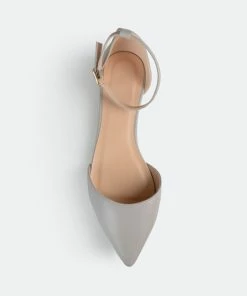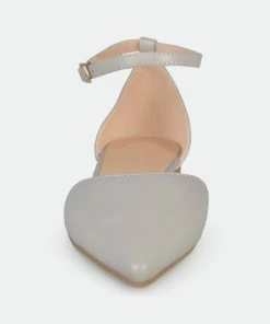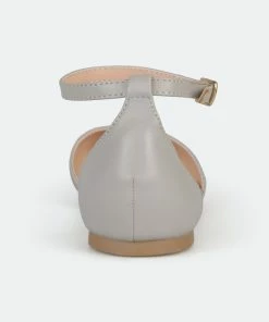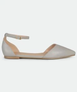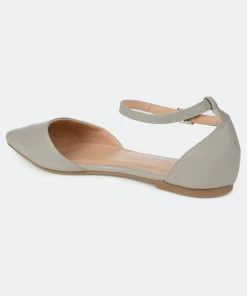 Create your chic style in pointed toe flats by Journee Collection. Premium faux leather uppers highlight pointed toes and raised back heels with a dainty ankle strap. Padded insoles create a comfortable fit to complete the design.FlatHeel Type: Sole Platform Height:1/2-inchShoe Width: MediumClosure Type: BuckleStrap Type: AnkleToe Style: PointedLining: Faux LeatherUpper Material: Faux LeatherOutersole Material: Man-madeFootbed: PaddedAll measurements are approximate and were taken using a size 6. Please note measurements may vary slightly by size.