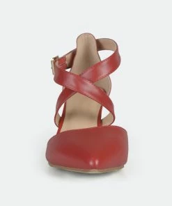 Show off chic style in strappy pumps by Journee Collection. These versatile cut-out pumps feature premium faux leather uppers that highlight a sleek cut-out style and an overlapping design that connects to the back heels.