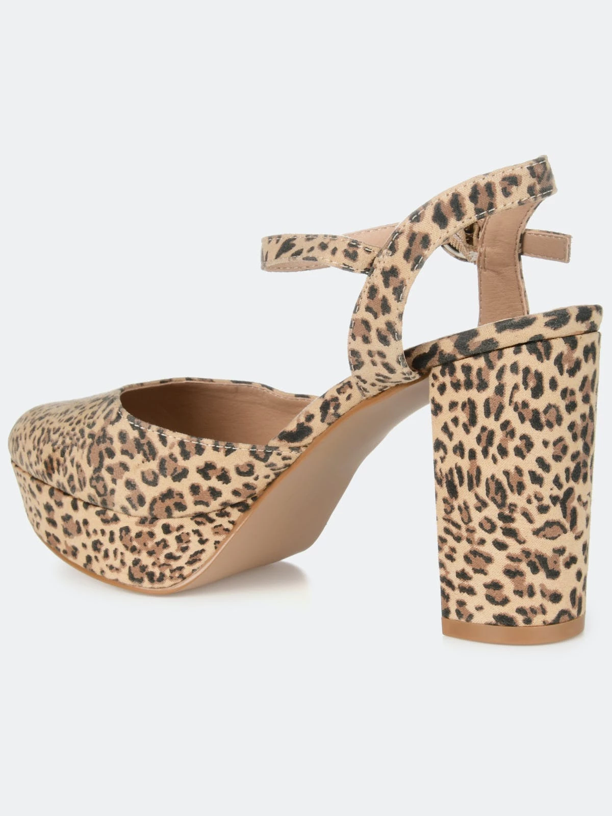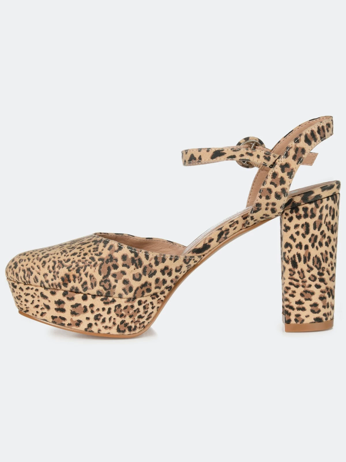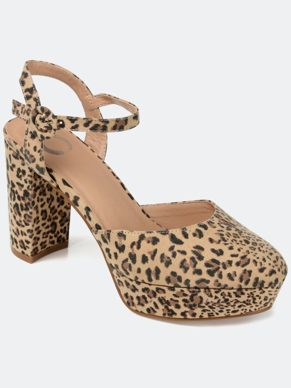 The Roslynn by Journee Collection has a vintage charm that is sure to bring out the vixen in you. Soft vegan suede and a buckled ankle strap shape this almond-toe pump. A retro platform and lofty covered block heel elevate the design.Heel Height:4-inchHeel Type: Block Heel Platform Height:1-inchShoe Width: MediumClosure Type: BuckleStrap Type: AnkleToe Style: AlmondLining: Faux LeatherUpper Material: Vegan LeatherOutersole Material: Man-madeFootbed: PaddedAll measurements are approximate and were taken using a size 6. Please note measurements may vary slightly by size.