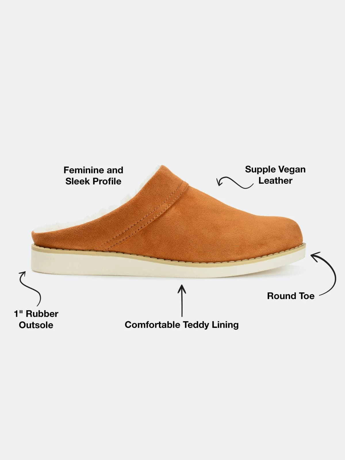 Easy does it. The Sabine slipper by Journee Collection features soft vegan leather lined with the coziest teddy bear fur. A slip-on entry, padded footbed, and almond-toe perfect this effortless look.Heel Height: 1-inch. Heel Type: Sole. Platform Height: 1/2-inch. Shoe Width: Medium. Closure Type: Slip-on. Toe Style: Almond. Lining: Faux Fur. Upper Material: Vegan Leather. Outersole Material: Man-made. Footbed: Padded. All measurements are approximate and were taken using a size 6. Please note measurements may vary slightly by size.