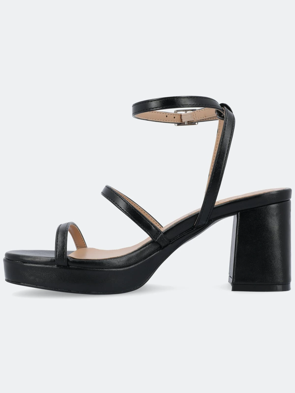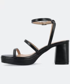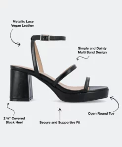 The Samilee platform sandals from Journee Collection will compliment your outfit, making it look better than before. Their metallic luxe vegan leather, covered block heel, buckled ankle strap, multi-strap design, and padded footbed will give you the perfect amount of style and comfort to let you go anywhere you want without wearing the wrong shoes. As a bonus, their open round toe shape will make your feet look better than ever.