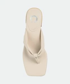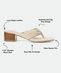 A cool take on the flip-flop, the Seelah by Journee Collection. This ultra-sleek sandal is shaped with soft vegan leather uppers lined with a padded footbed. An open square-toe and a stacked block heel finish the look.Heel Height:1 3/4-inchHeel Type: Stacked Platform Height:Flat-inchShoe Width: MediumClosure Type: Slip-onStrap Type: Toe StrapToe Style: OpenLining: Faux LeatherUpper Material: Vegan LeatherOutersole Material: Man-madeFootbed: PaddedAll measurements are approximate and were taken using a size 6. Please note measurements may vary slightly by size.