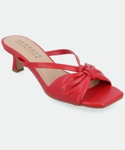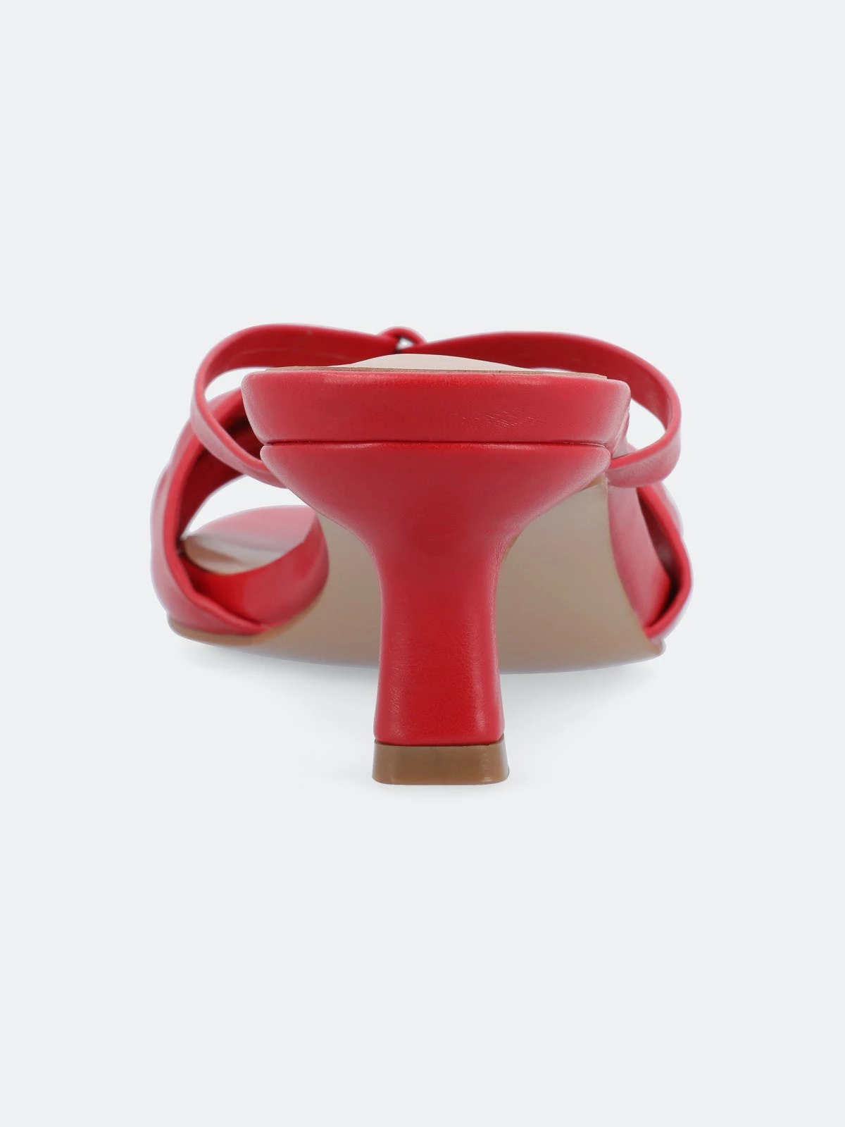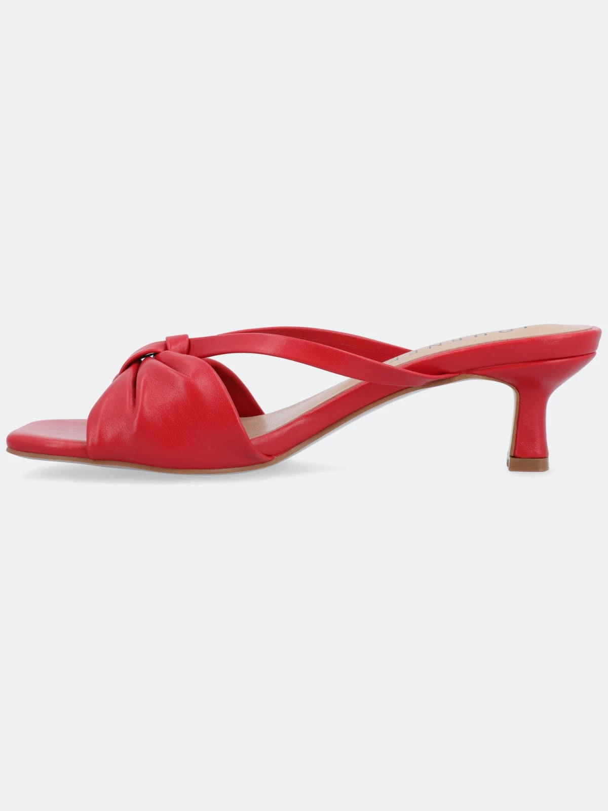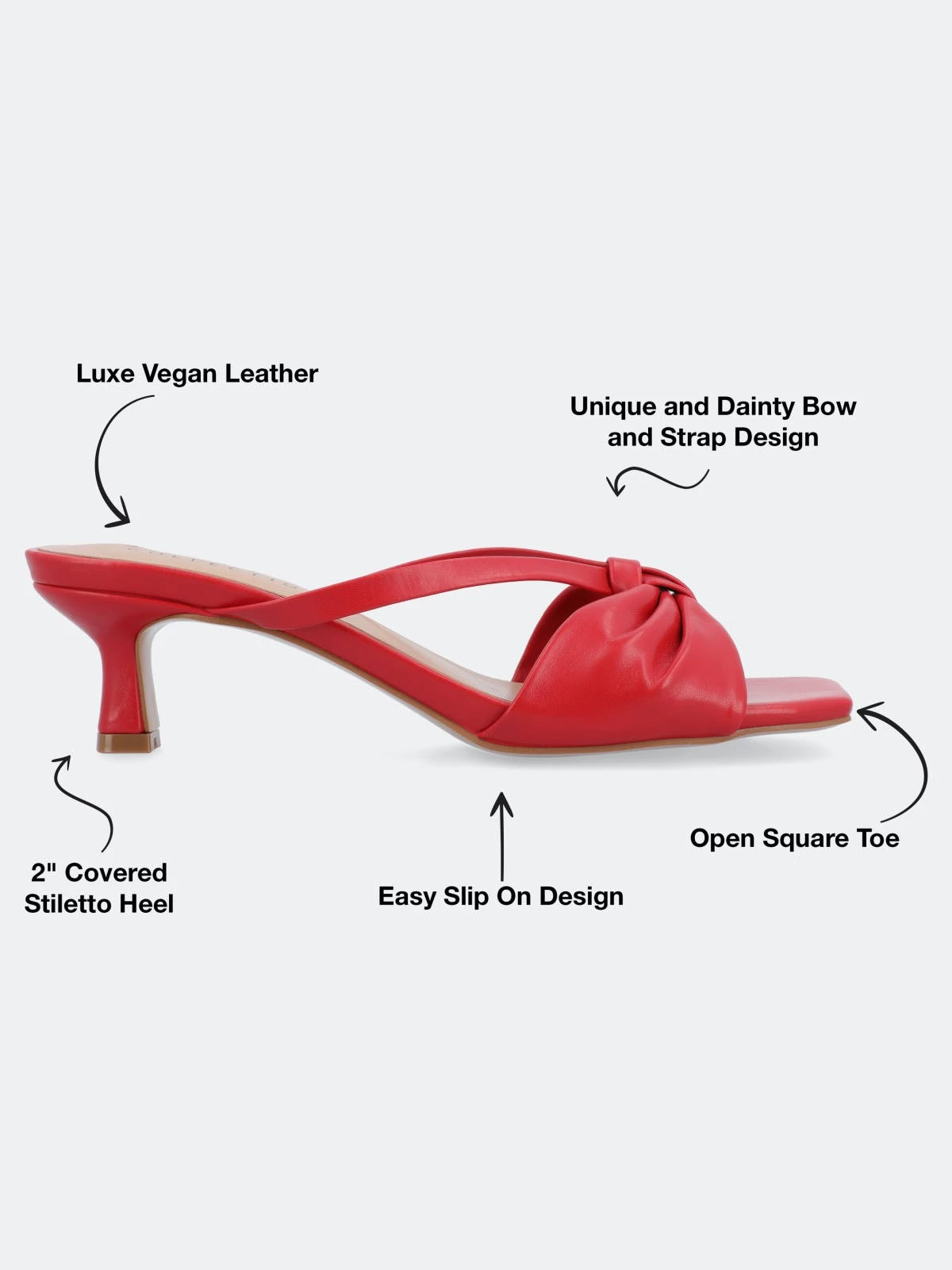 The Starling kitten heel from Journee Collection will leave you feeling your best, thanks to the bow detail. Their luxe vegan leather, two-tone details, side strap band design, and open square toe will give you that style to keep you in the new. Giving you a little extra touch, their padded footbed and slip-on closure will have your feet feeling more comfortable than any other heel.