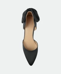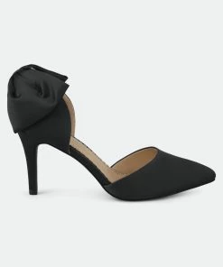 Add evening wear to your style with pumps by Journee Collection. These pumps highlight smooth fabric and a sleek pointed toe style. A large bow accent adorns the closed back heels and adds feminine detail to the design.Heel Height:3-inchHeel Type: Heel Platform Height:1/2-inchShoe Width: MediumClosure Type: Slip-onToe Style: PointedLining: Faux LeatherUpper Material: FabricOutersole Material: Fabric over SyntheticFootbed: PaddedAll measurements are approximate and were taken using a size 6. Please note measurements may vary slightly by size.
