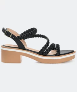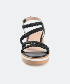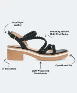 A light, breezy look for summer, the Taralie by Journee Collection. This charming multi-strap sandal features premium vegan leather uppers fastened by a buckle at the ankle. A lightweight block heel and padded insole support this breezy design.Heel Height:2-inchHeel Type: Block Heel Platform Height:1-inchShoe Width: MediumClosure Type: BuckleStrap Type: AnkleToe Style: OpenLining: Faux LeatherUpper Material: Vegan LeatherOutersole Material: Man-madeFootbed: PaddedAll measurements are approximate and were taken using a size 6. Please note measurements may vary slightly by size.