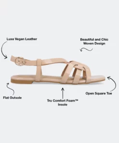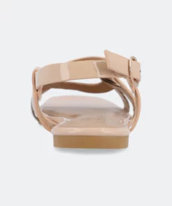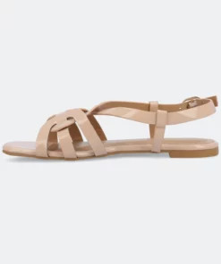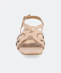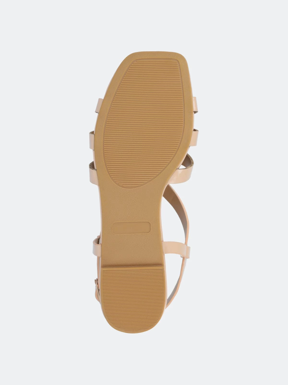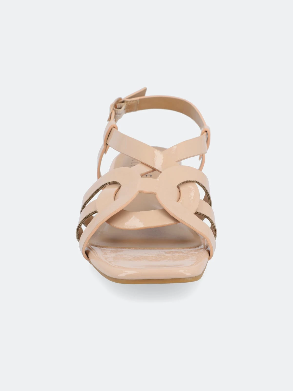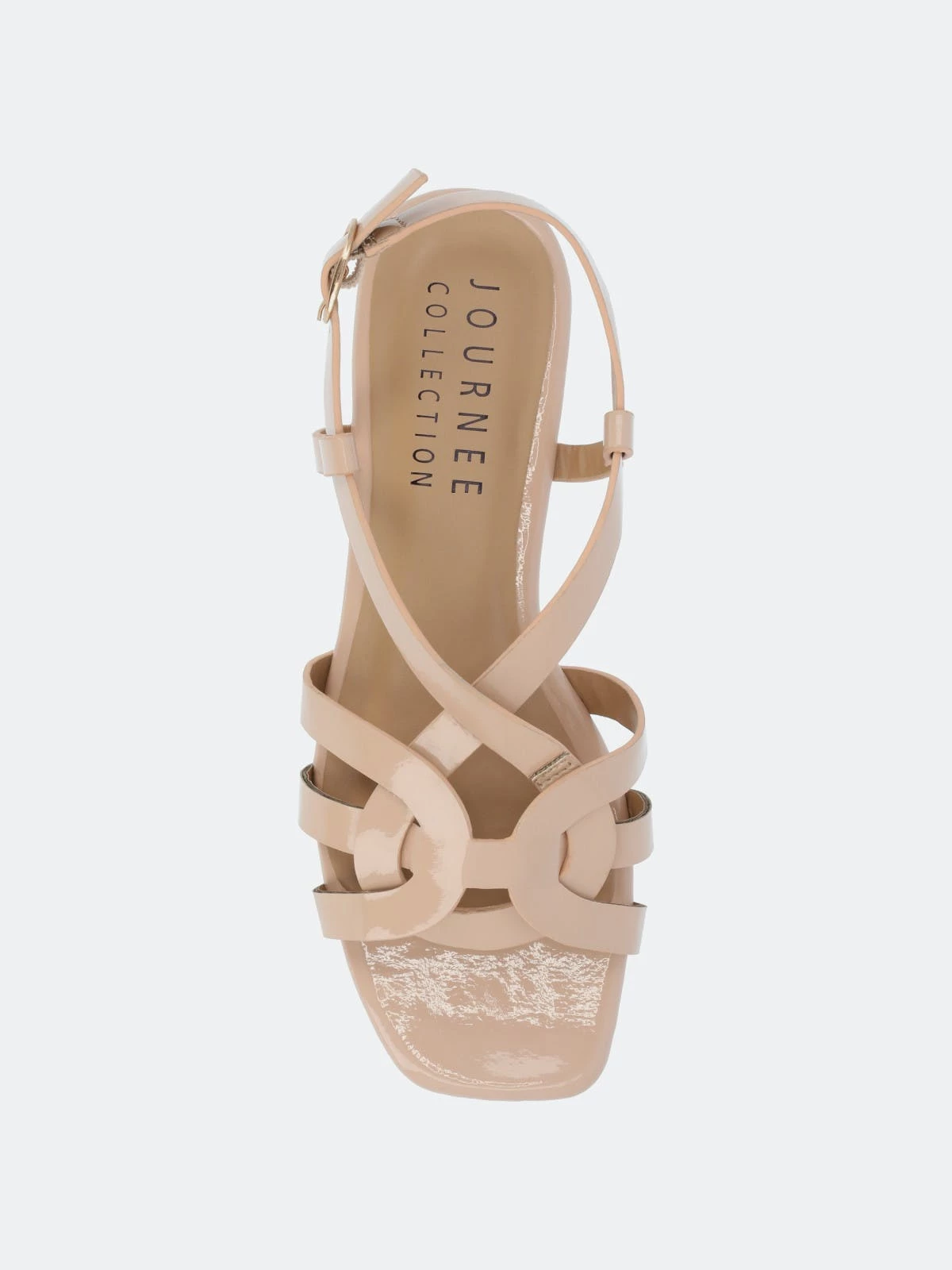 The Alorra sandal from Journee Collection will leave you walking out the door with a boost of confidence. Their patent vegan leather, interlocking strap design, and open square toe make them an easy trendy look for summer. As a bonus, their 4 mm Tru Comfort Foam™ insole and buckle closure will keep your feet more comfortable than any other sandal.The multi-strap detail on this easy sandal makes it a must-have for summer.