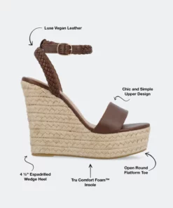 The Andiah platform wedge sandal from Journee Collection will be the perfect shoe to compliment your outfit with its open round toe. Their luxe vegan leather, buckle, espadrille, and braided buckle ankle strap will give you all the style you could want. To keep things simple, they have a 4 mm Tru Comfort Foam™ insole that will keep you happy and comfy for those long days.The perfect sandal that says it all for the perfect night out on the town with the girls.