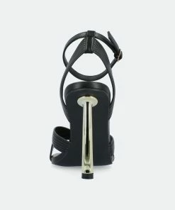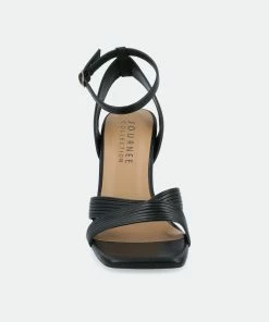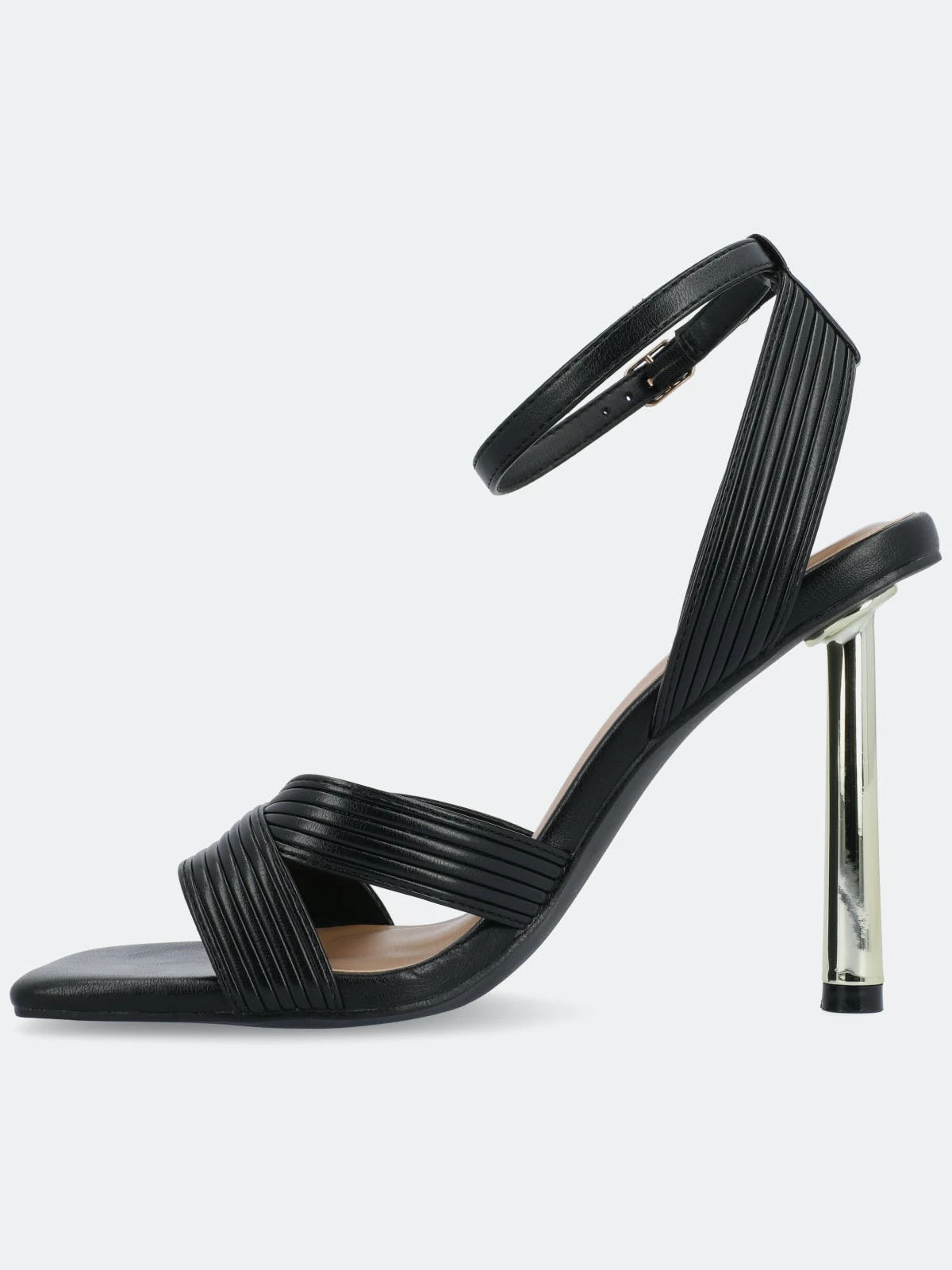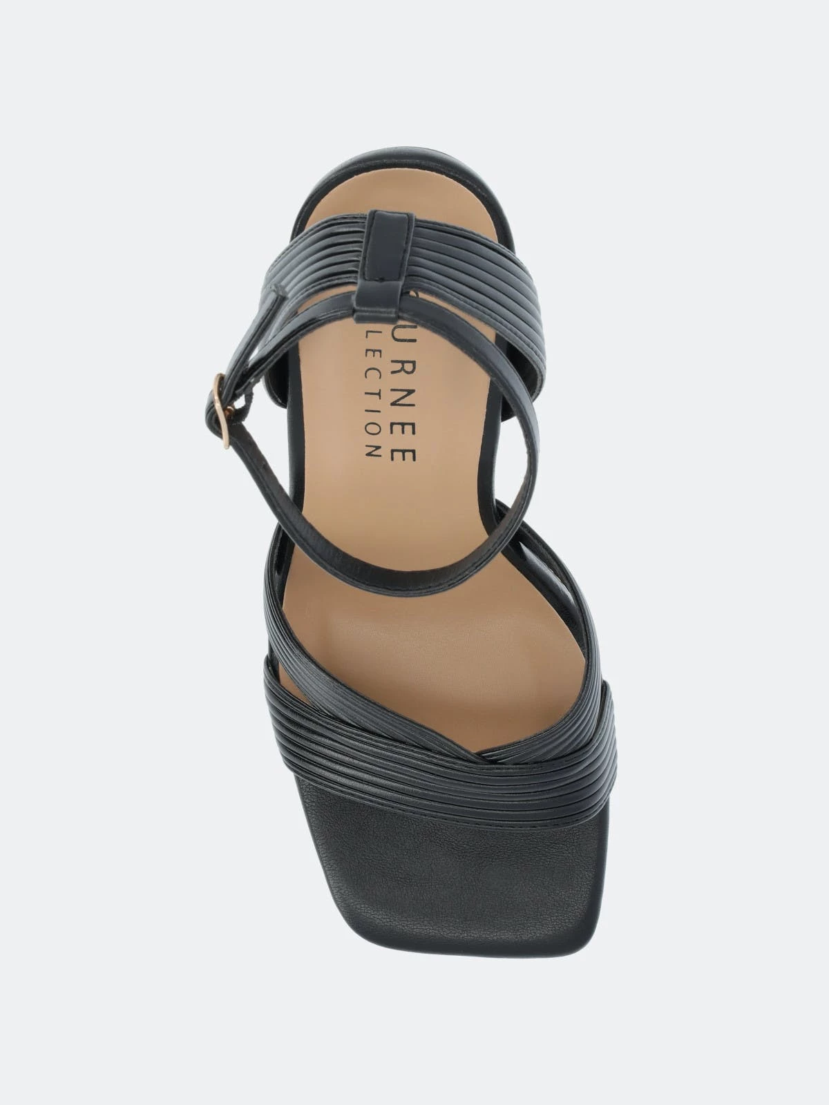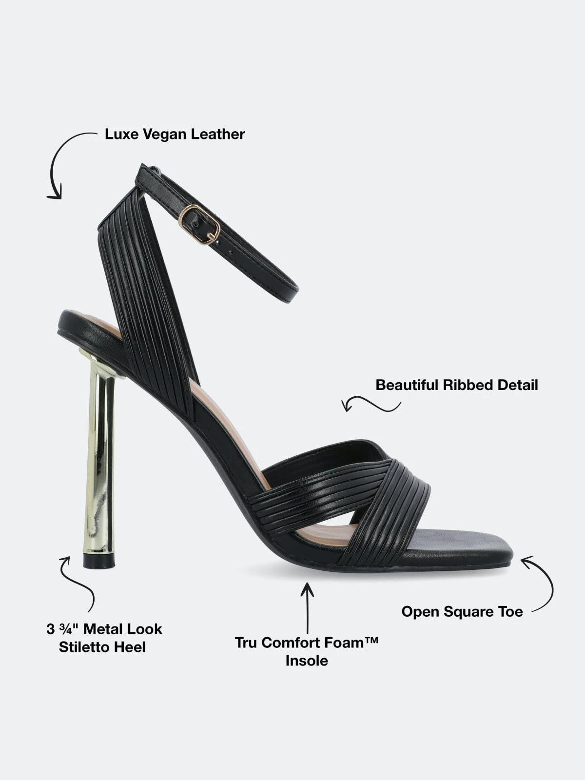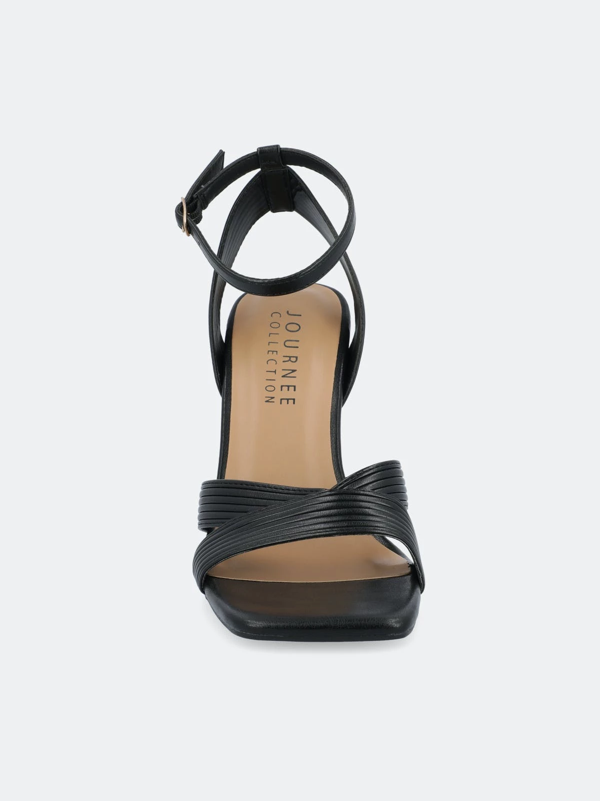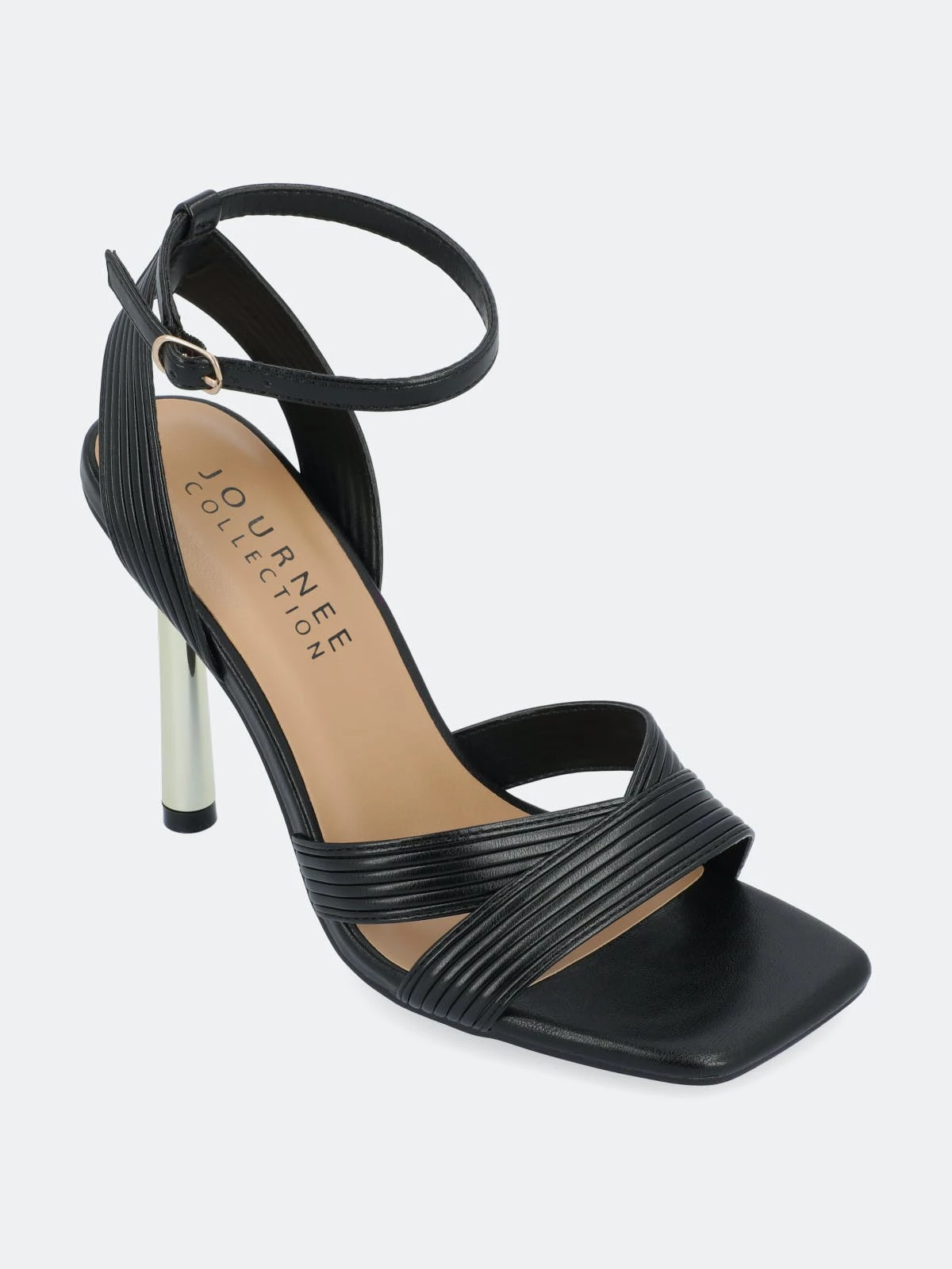 The Annett heels from Journee Collection will bring you compliments from every direction. With their luxe vegan leather, inset metal stiletto heel, buckled strap, and crisscross details, you will surely find yourself wearing them on repeat. We finished the design with an open square toe and a 4 mm Tru Comfort Foam™ insole to give you some comfort.