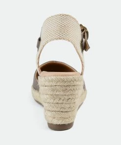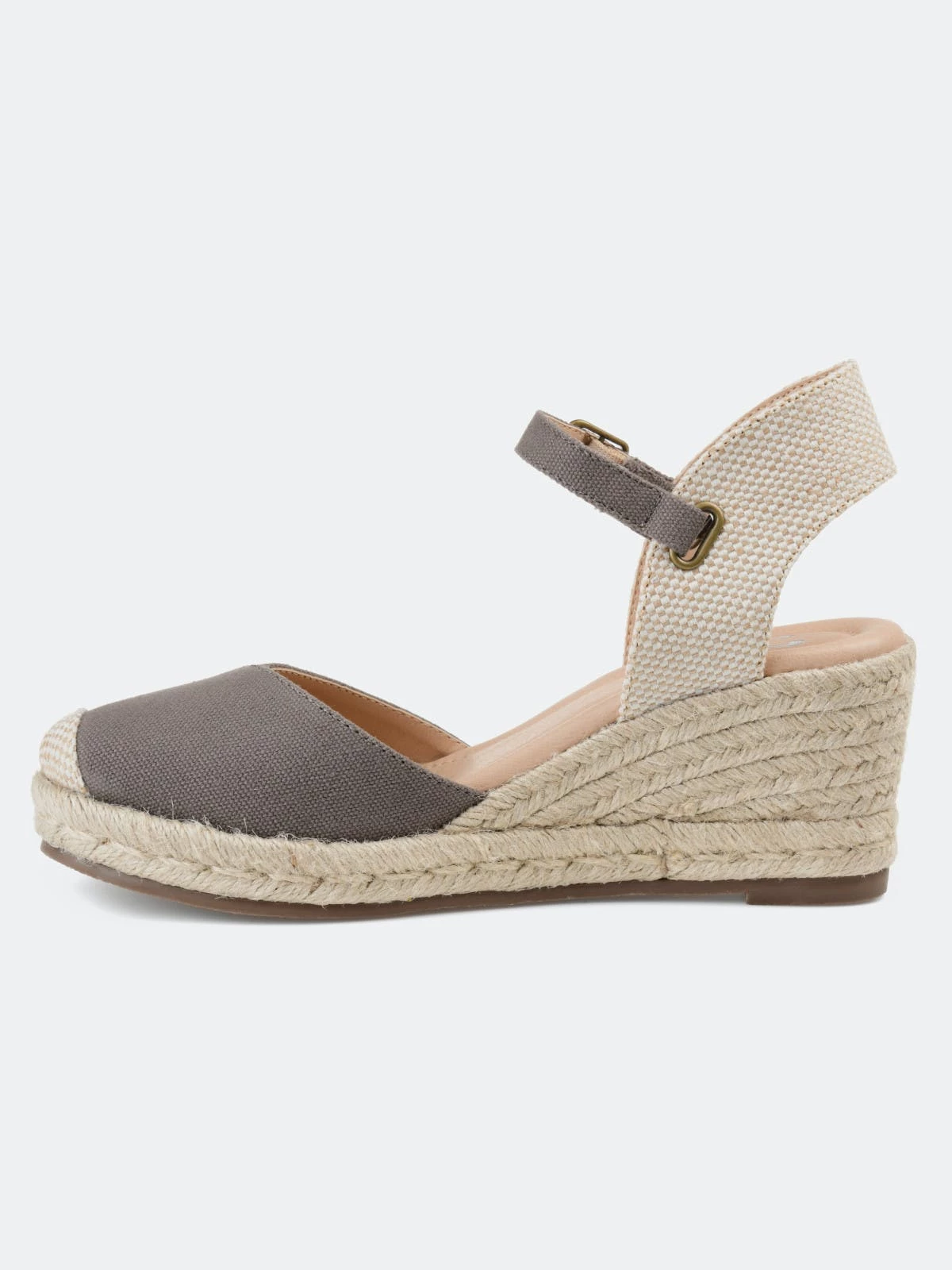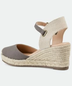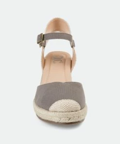 Step into a fun new summer style with the Ashlyn wedge by Journee Collection. These comfort design wedges have the perfect drop of color to add to your wardrobe. The colored ankle strap, perfect height espadrille wedge, and the cross-over colored toe design all combine to make the perfect wedge.Heel Height:3-inchHeel Type: Wedge Platform Height:1-inchShoe Width: MediumClosure Type: BuckleStrap Type: AnkleToe Style: RoundLining: Faux LeatherUpper Material: CanvasOutersole Material: SyntheticFootbed: 4 MM Tru Comfort Foam™All measurements are approximate and were taken using a size 6. Please note measurements may vary slightly by size.