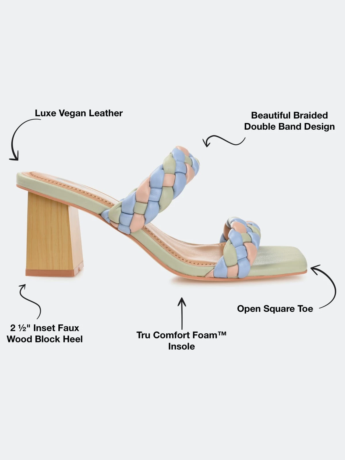 A dazzling dressy style, the Bronte by Journee Collection. This retro-cool style is framed by a square toe, and a faux wood block heel offers the ideal amount of height. You won’t be able to resist slipping them on with their 4 mm Tru Comfort Foam™ footbed and puffed straps.Heel Height:2 1/2-inchHeel Type: Block Heel Platform Height:Flat-inchShoe Width: MediumClosure Type: Slip-onStrap Type: Multi -StrapToe Style: OpenLining: Man-madeUpper Material: Man-madeOutersole Material: Man-madeFootbed: 4 MM Tru Comfort Foam™All measurements are approximate and were taken using a size 6. Please note measurements may vary slightly by size.
