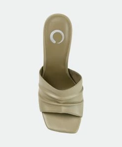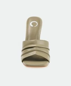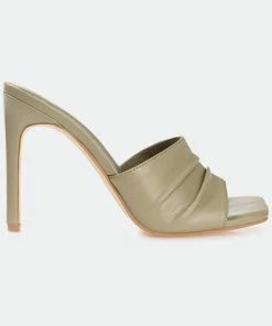 An attention-getting style you’ll want to wear every day, the Camber by Journee Collection. This slip-on heel features vegan leather uppers detailed with ruching and an open toe. A super supportive 4 mm Tru Comfort Foam™ footbed finishes the design for a comfortable but elevated fit.Heel Height:4-inchHeel Type: Stiletto Platform Height:Flat-inchShoe Width: MediumClosure Type: Slip-onStrap Type: Single BandToe Style: OpenLining: Faux LeatherUpper Material: Vegan LeatherOutersole Material: Man-madeFootbed: 4 MM Tru Comfort Foam™All measurements are approximate and were taken using a size 6. Please note measurements may vary slightly by size.