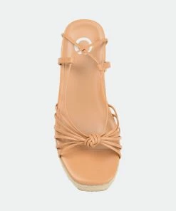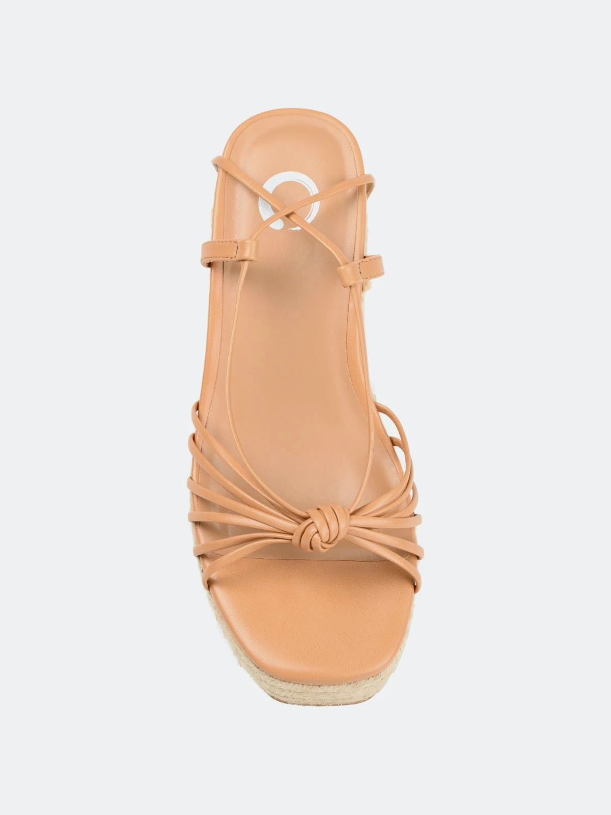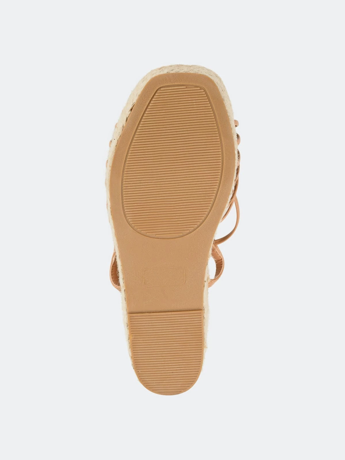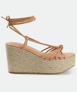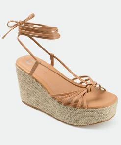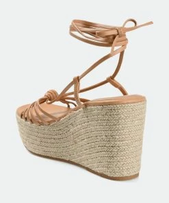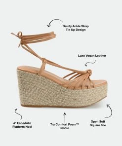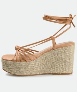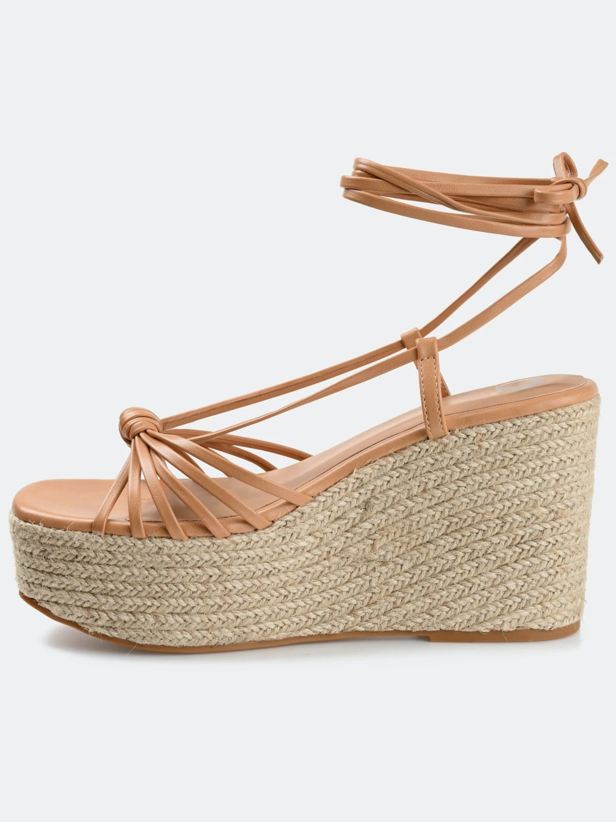 With the Catalinn by Journee Collection, you can bring on the summer vibes. The multi-straps on this tie-up shoe are guaranteed to brighten up your day. Soft vegan leather uppers, a 4 mm Tru Comfort Foam™ footbed, and an espadrille-wrapped platform heel add texture to the design.Heel Height:4-inchHeel Type: Platform Platform Height:2-inchShoe Width: MediumClosure Type: Tie UpStrap Type: Ankle WrapToe Style: OpenLining: Faux LeatherUpper Material: Vegan LeatherOutersole Material: Man-madeFootbed: 4 MM Tru Comfort Foam™All measurements are approximate and were taken using a size 6. Please note measurements may vary slightly by size.