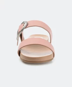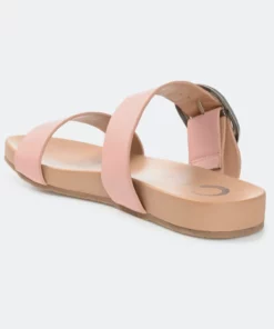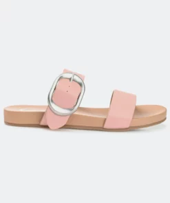 Easy but cute. The Crysta by Journee Collection features stylish extras like twin straps and chunky buckle detail. A Tru Comfort Foam™ footbed keeps you on your feet easily, and vegan leather defines the silhouette.Heel Height:1-inchHeel Type: Sole Platform Height:1/2-inchShoe Width: MediumClosure Type: Slip-onStrap Type: Multi -StrapToe Style: OpenLining: Faux LeatherUpper Material: Vegan LeatherOutersole Material: Man-madeFootbed: Tru Comfort Foam™All measurements are approximate and were taken using a size 6. Please note measurements may vary slightly by size.