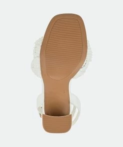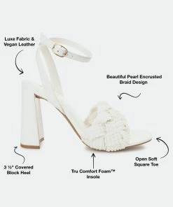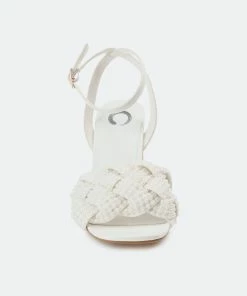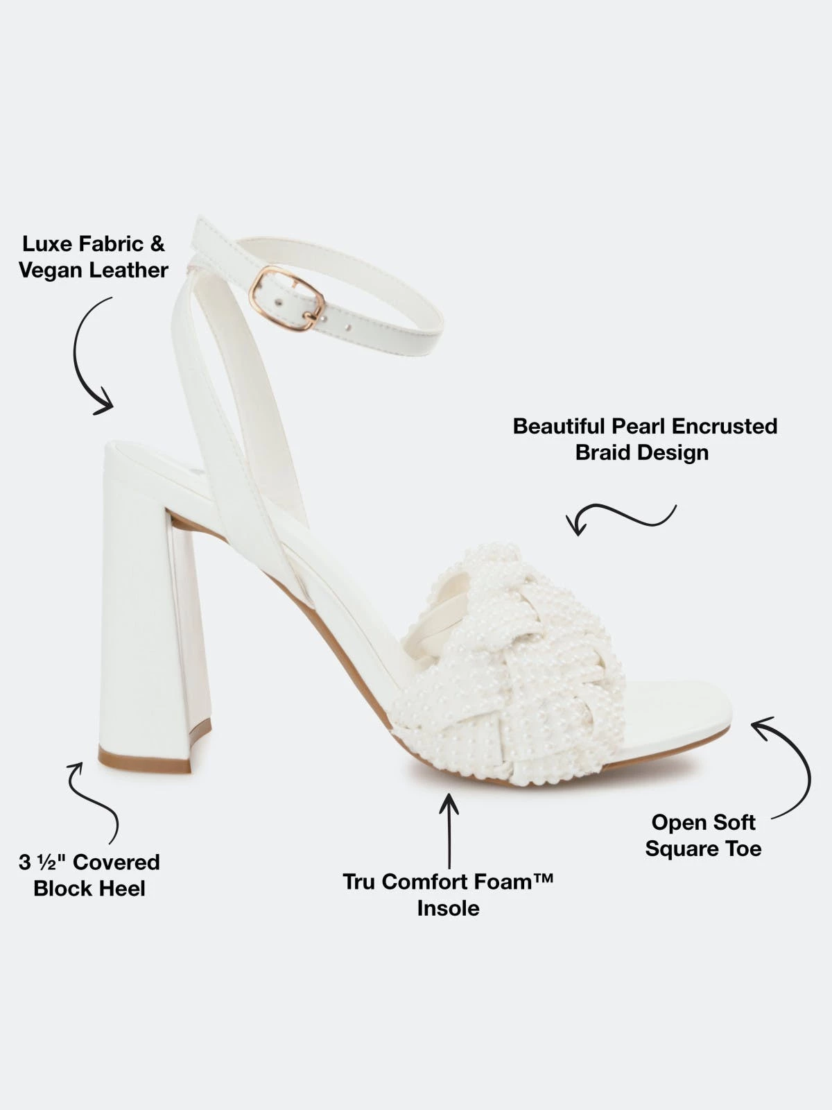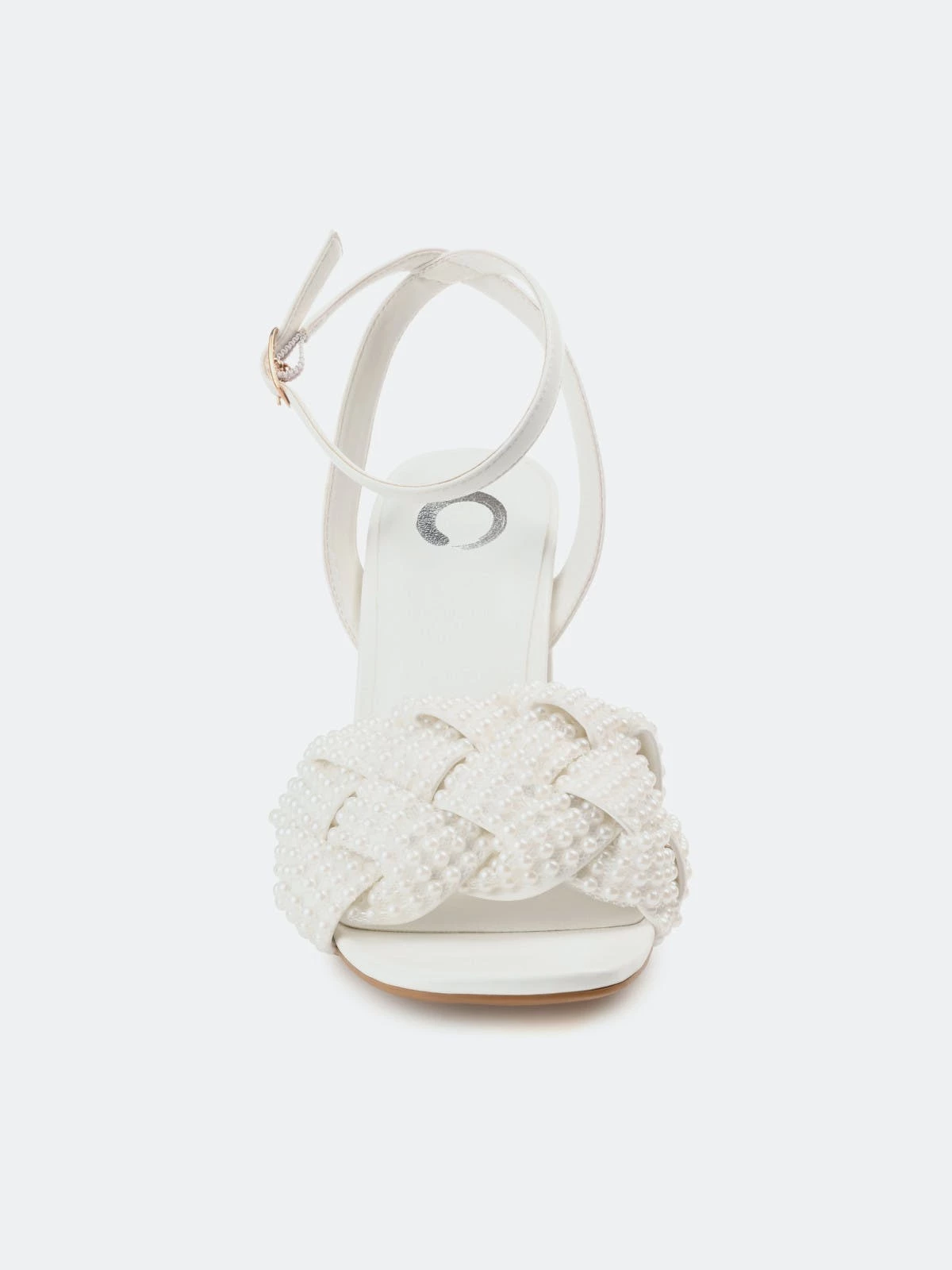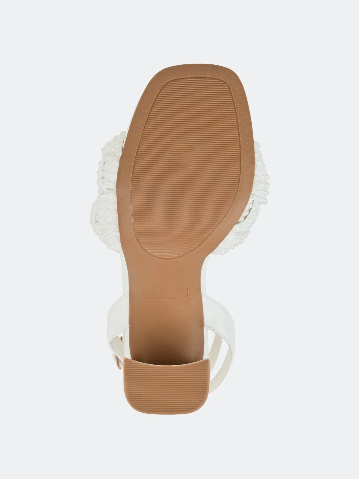 With the Dua by Journee Collection, you can put on a show-stopping look. The uppers of this open toe design are made of the softest vegan leather, and the footbed is lined with a 4 mm Tru Comfort Foam™. This modern style is crowned with pearl details at the toe.Heel Height:3 1/2-inchHeel Type: Block Heel Platform Height:Flat-inchShoe Width: MediumClosure Type: BuckleStrap Type: AnkleToe Style: OpenLining: Faux LeatherUpper Material: Man-madeOutersole Material: Man-madeFootbed: 4 MM Tru Comfort Foam™All measurements are approximate and were taken using a size 6. Please note measurements may vary slightly by size.