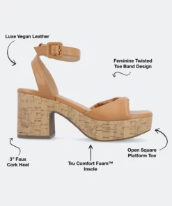 The Eianna faux cork platform sandals from Journee Collection will be the perfect shoes to take you from work, a special event, or even out to dinner in the most comfortable pair of sandals that you’ll own, with their 4 mm Tru Comfort Foam™ insole. Their luxe vegan leather, buckled ankle strap, and twist band design will give you all the confidence you need to leave your house with a boost of confidence. As a bonus, their open square toe will compliment your outfit to make it look better than before.