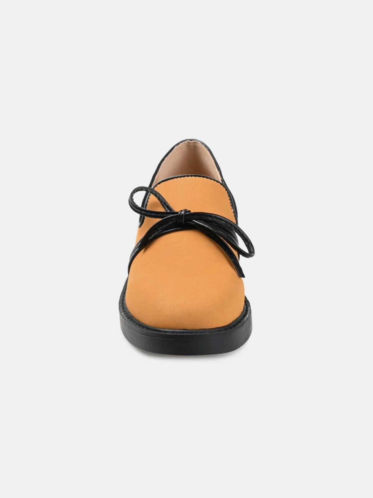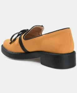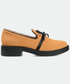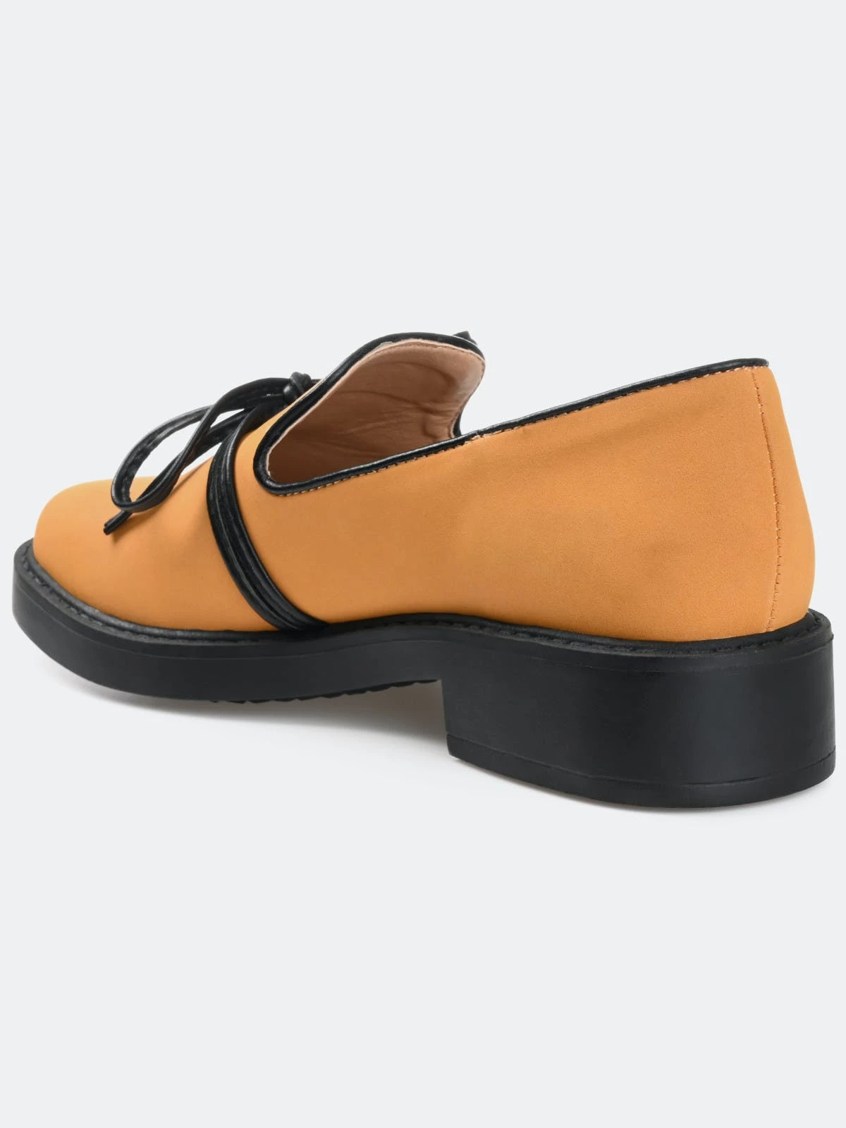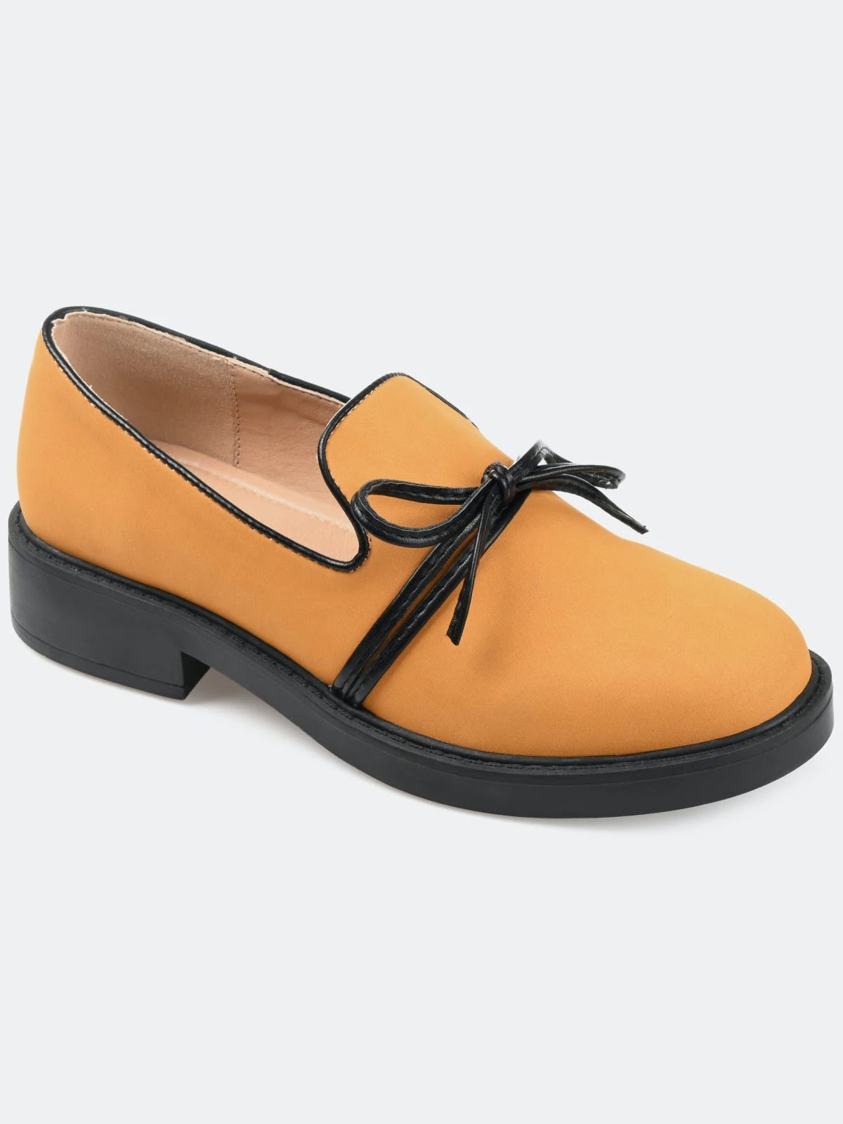 Kick your day off with a retro vibe in the Eilien by Journee Collection. This vegan leather loafer gives any outfit a charming finish with a round-toe and notches at the topline. A 4 mm Tru Comfort Foam™ footbed and a low block heel perfect this comfortable yet classy look.Heel Height:1 1/2-inchHeel Type: Block Heel Platform Height:1-inchShoe Width: MediumClosure Type: Slip-onToe Style: RoundLining: FabricUpper Material: Vegan LeatherOutersole Material: Man-madeFootbed: 4 MM Tru Comfort Foam™All measurements are approximate and were taken using a size 6. Please note measurements may vary slightly by size.
