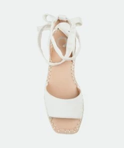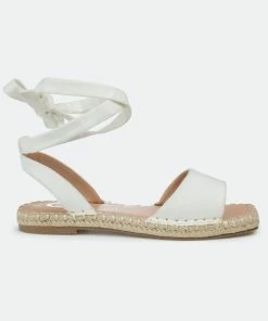 The Emelie by Journee Collection brings a whole new meaning to the word sandal. With a 4 mm Tru Comfort Foam™ insole and a ballerina-inspired tie at the ankle, we just want to dance! Whipstitch trim at the footbed and espadrille braids at the sole perfect this vegan suede design.FlatHeel Type: Sole Platform Height:Flat-inchShoe Width: MediumClosure Type: Lace-upStrap Type: Ankle WrapToe Style: OpenLining: Faux LeatherUpper Material: Vegan LeatherOutersole Material: Man-madeFootbed: 4 MM Tru Comfort Foam™All measurements are approximate and were taken using a size 6. Please note measurements may vary slightly by size.