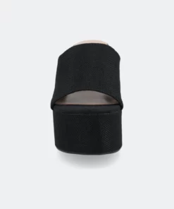 The Enyya platform heeled sandal from Journee Collection will take you from classic to fantastic with their canvas material. Keeping the style going, their toe band style, slip-on closure, and open round toe will be the perfect combination to take you around town in the shoes of your dreams. The 4 mm Tru Comfort Foam™ insole will keep your feet happy with how comfortable they will feel. A sandal that will take you around town feeling comfortable and stylish all in one.