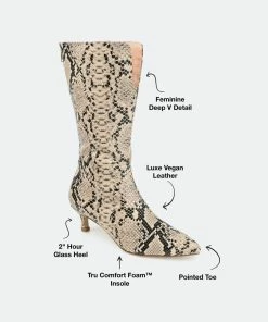 Stride in style with the Esperanza boot by Journee Collection. This sleek mid-calf silhouette features a notch at the topline, vegan leather, and a zipper up the back for easy entry. With the 4 mm Tru Comfort Foam™ footbed and low heel, you’ll look and feel your best in this style.Heel Height: 2-inch. Heel Type: Heel. Platform Height: Flat-inch. Shaft Height: 11 inches. Calf Circumference: 12 1/2 inches. Top Circumference: 12 1/2 inches. Shoe Width: Medium. Closure Type: Back Heel Zip. Toe Style: Pointed. Lining: Fabric. Upper Material: Vegan Leather. Outersole Material: Man-made. Footbed: 4 MM Tru Comfort Foam™. All measurements are approximate and were taken using a size 6. Please note measurements may vary slightly by size.