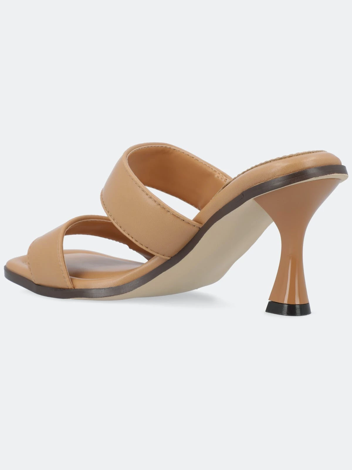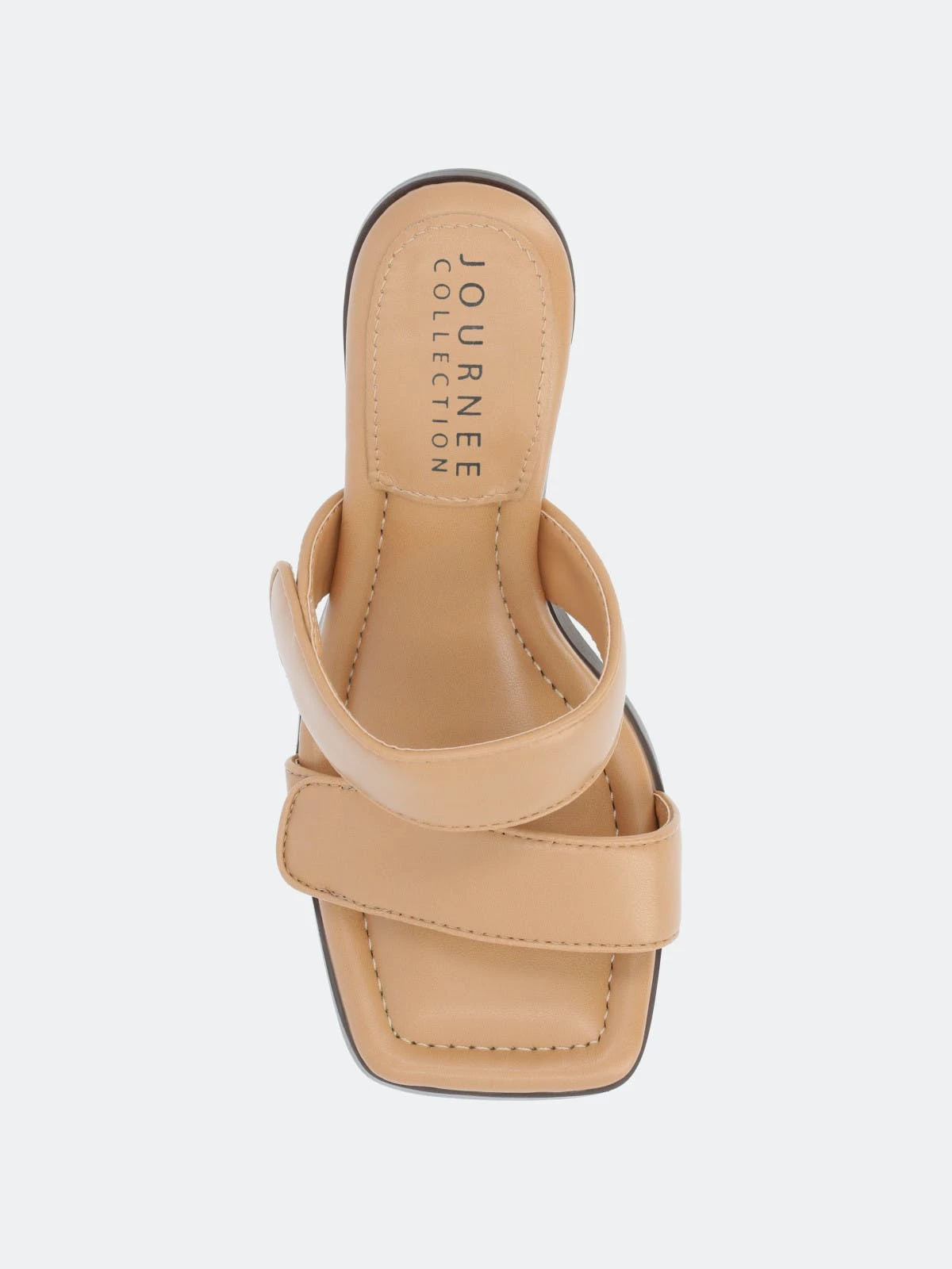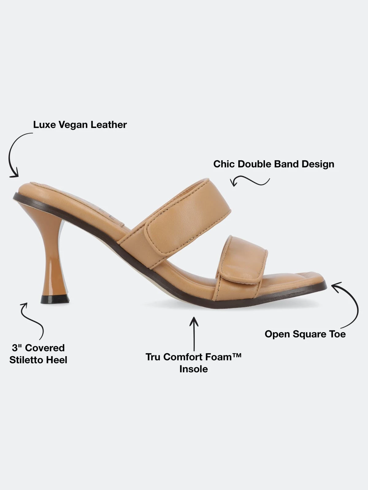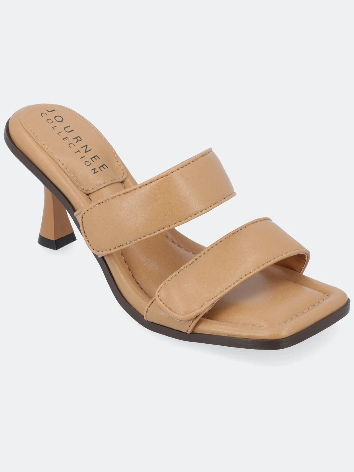 The Essey Heels from Journee Collection will give a little extra confidence thanks to the mule silhouette, double straps, and open square-toe. With their 8 mm tru comfort foam™ insole and stiletto heel, they will make you feel comfortable while still allowing you to strut your stuff. This trendy look is sure to turn heads whether you wear them with jeans or a little black dress. All measurements are approximate and were taken using a size 6. please note measurements may vary slightly by size.