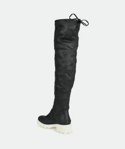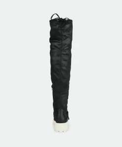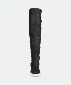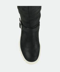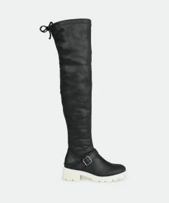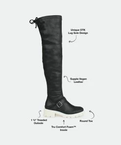 The Salisa boot by Journee Collection is the perfect bold style for fall. This over-the-knee boot features a 4 mm Tru Comfort Foam™ footbed, an extra-wide calf, and supple vegan leather for a comfortable fit. A buckled strap and a chic lug sole finish this must-have.Heel Height: 1 3/4-inch. Heel Type: Block Heel. Platform Height: 1-inch. Shaft Height: 21 1/2 inches. Calf Circumference: 16 inches. Top Circumference: 19 1/2 inches. Shoe Width: Medium. Closure Type: Inside Zip. Toe Style: Round. Lining: Fabric. Upper Material: Vegan Leather. Outersole Material: Man-made. Footbed: 4 MM Tru Comfort Foam™. All measurements are approximate and were taken using a size 6. Please note measurements may vary slightly by size.