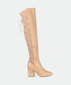 Mix-and-matchable but never ordinary, introducing the Valorie boots by Journee Collection. This extra-wide calf boot features a 4 mm Tru Comfort Foam™ insole and vegan leather detailed with a forgiving stretch gore panel. A back-lace design and a chunky block heel give this over-the-knee style a modern finish.Heel Height: 3-inch. Heel Type: Block Heel. Platform Height: Flat-inch. Shaft Height: 20 1/2 inches. Calf Circumference: 16 1/2 inches. Top Circumference: 17 inches. Shoe Width: Medium. Closure Type: Pull-on. Toe Style: Pointed. Lining: Fabric. Upper Material: Vegan Leather. Outersole Material: Man-made. Footbed: 4 MM Tru Comfort Foam™. All measurements are approximate and were taken using a size 6. Please note measurements may vary slightly by size.