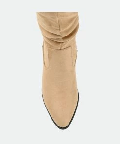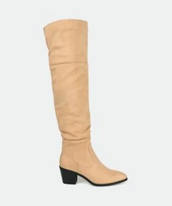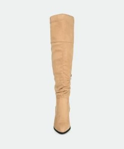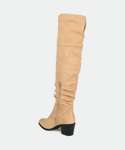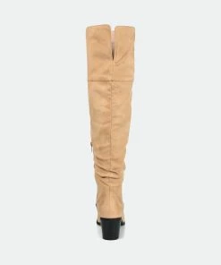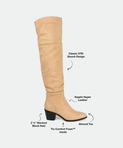Ready to take you fabulous places, the Zivia boots by Journee Collection. This sassy over-the-knee boot features slouchy vegan leather uppers and a classic almond-toe. A soft 4 mm Tru Comfort Foam™ footbed and an extra-wide calf offer the perfect fit.Heel Height: 2 1/2-inch. Heel Type: Stacked. Platform Height: Flat-inch. Shaft Height: 19 inches. Calf Circumference: 16 1/2 inches. Top Circumference: 17 1/2 inches. Shoe Width: Medium. Closure Type: Inside Zip. Toe Style: Almond. Lining: Fabric. Upper Material: Vegan Leather. Outersole Material: Man-made. Footbed: 4 MM Tru Comfort Foam™. All measurements are approximate and were taken using a size 6. Please note measurements may vary slightly by size.