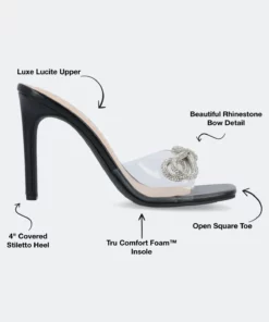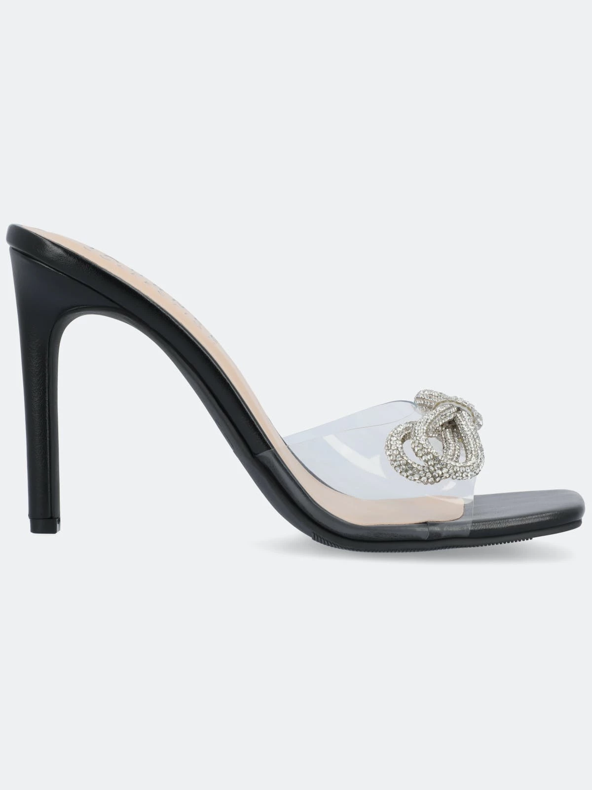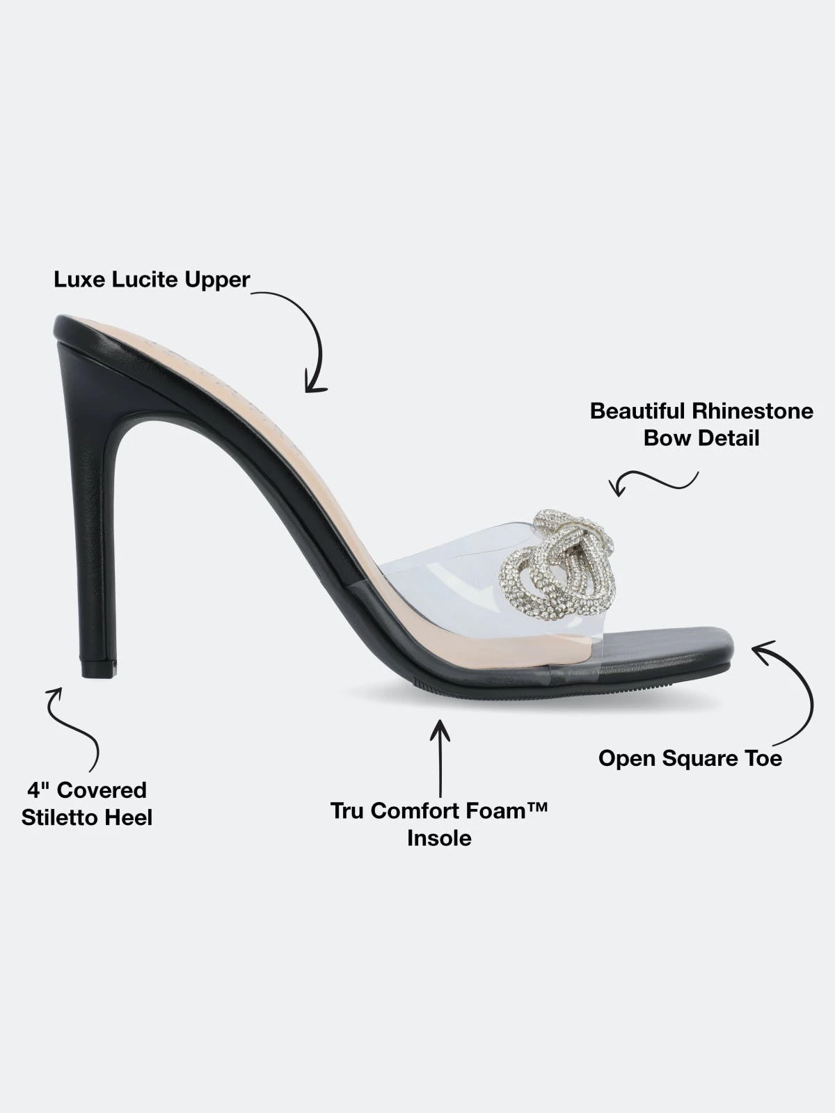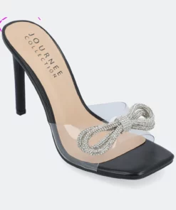 The Fenella heels from Journee Collection will give you style and comfort all in one with their 4 mm Tru comfort Foam™ insole, lucite material, and open toe. As a bonus, their stiletto heel, slip-on silhouette make them the perfect formal yet easy heel for special occasions. Rhinestone details top the look for a show-stopping finish.