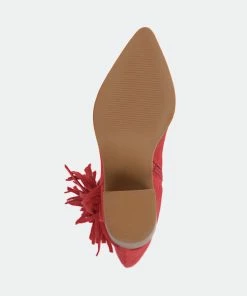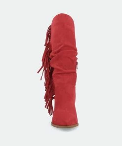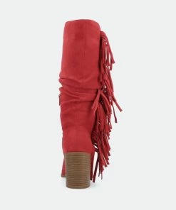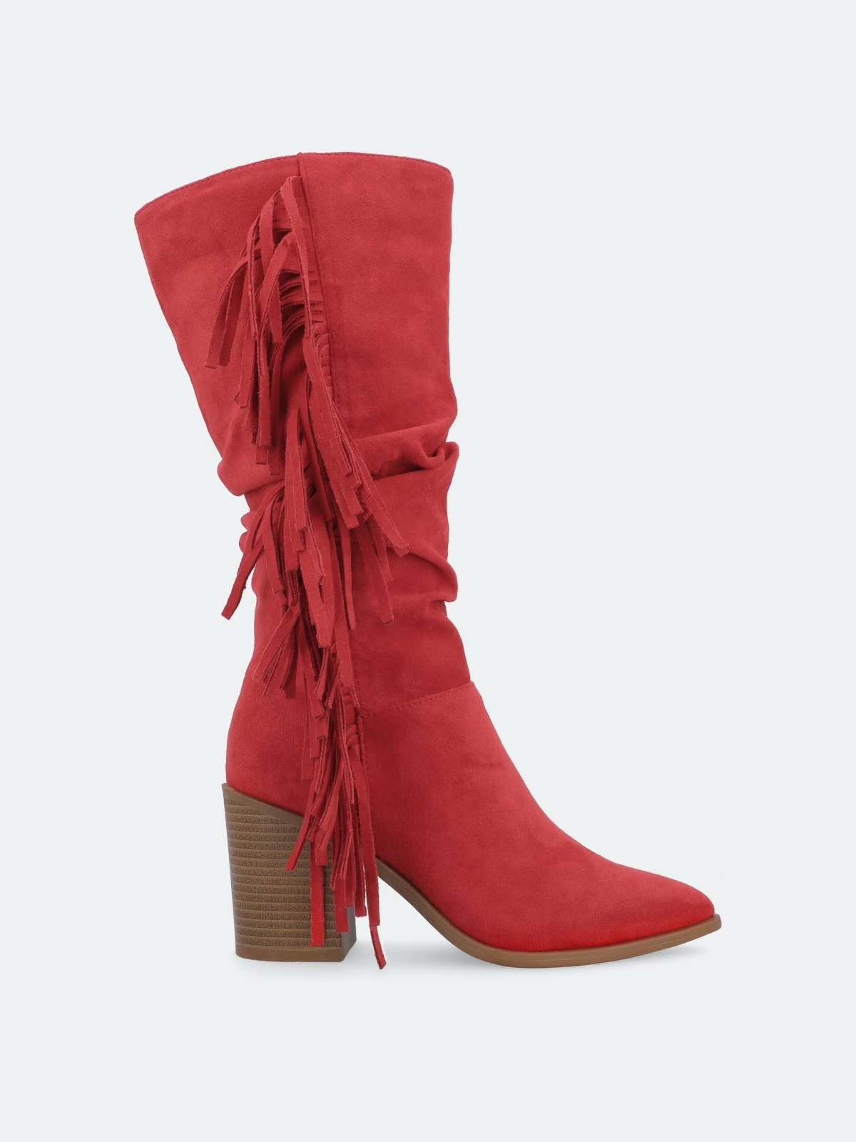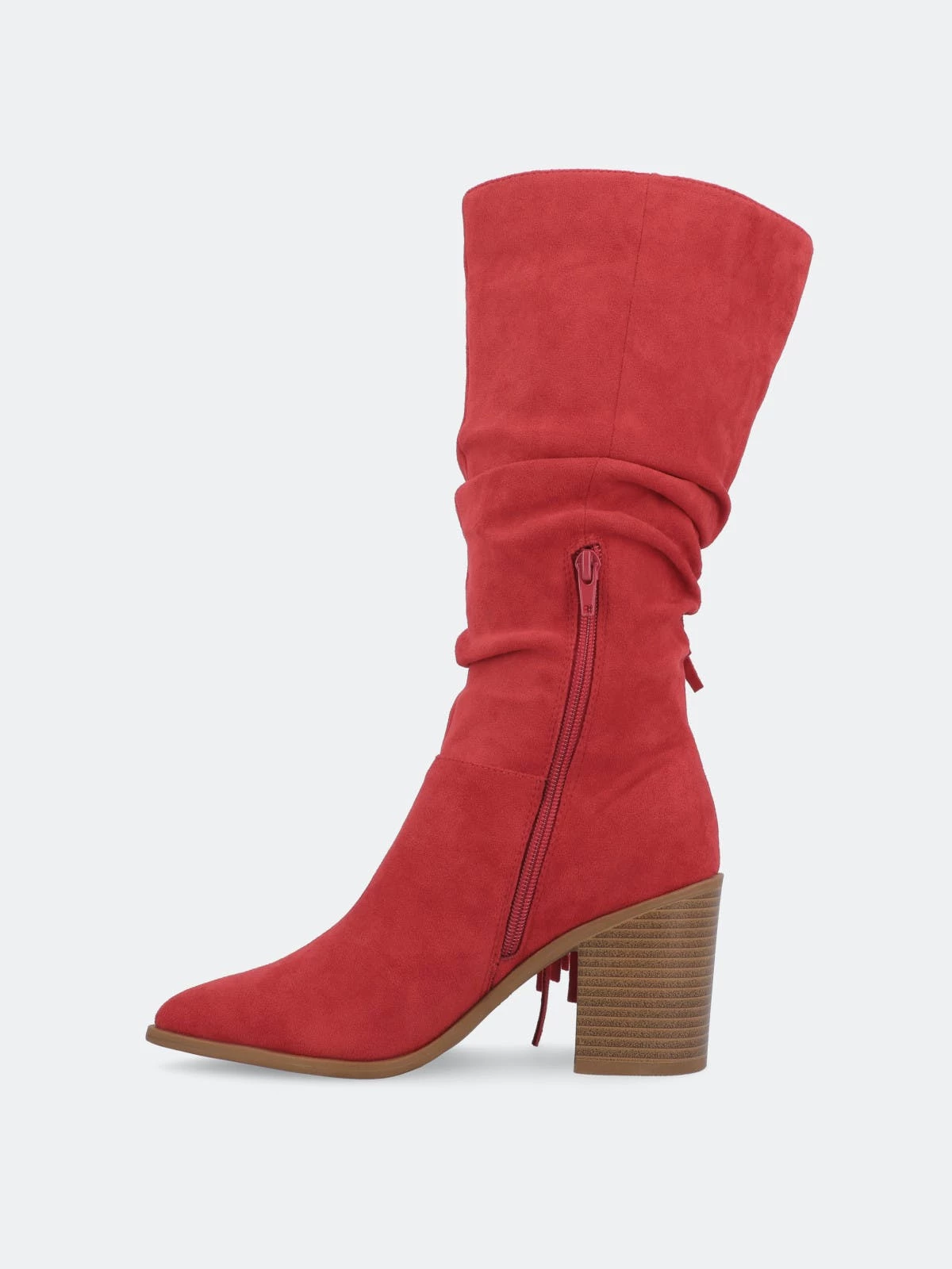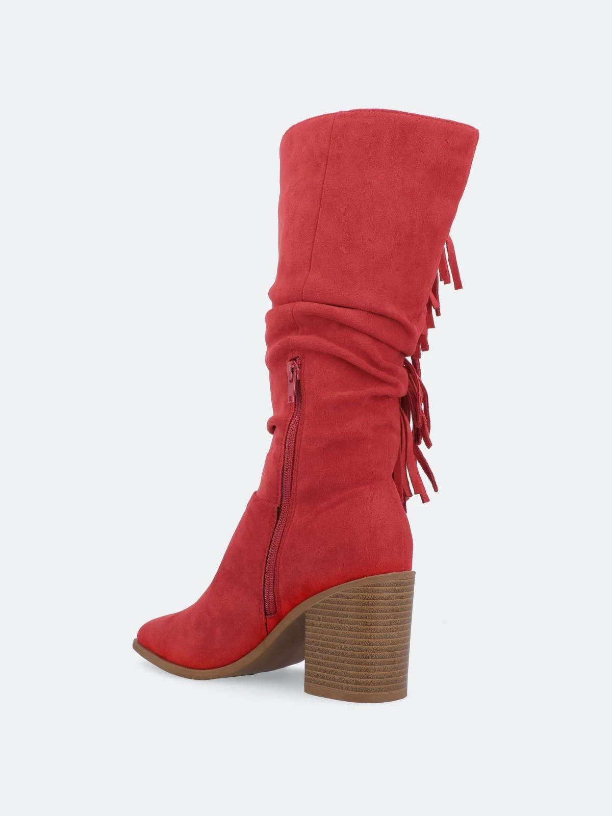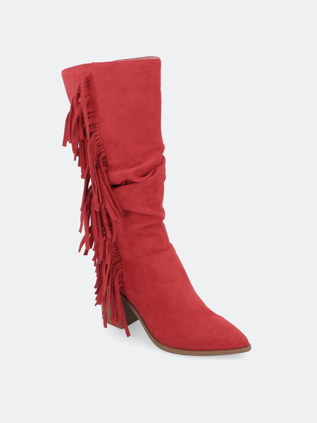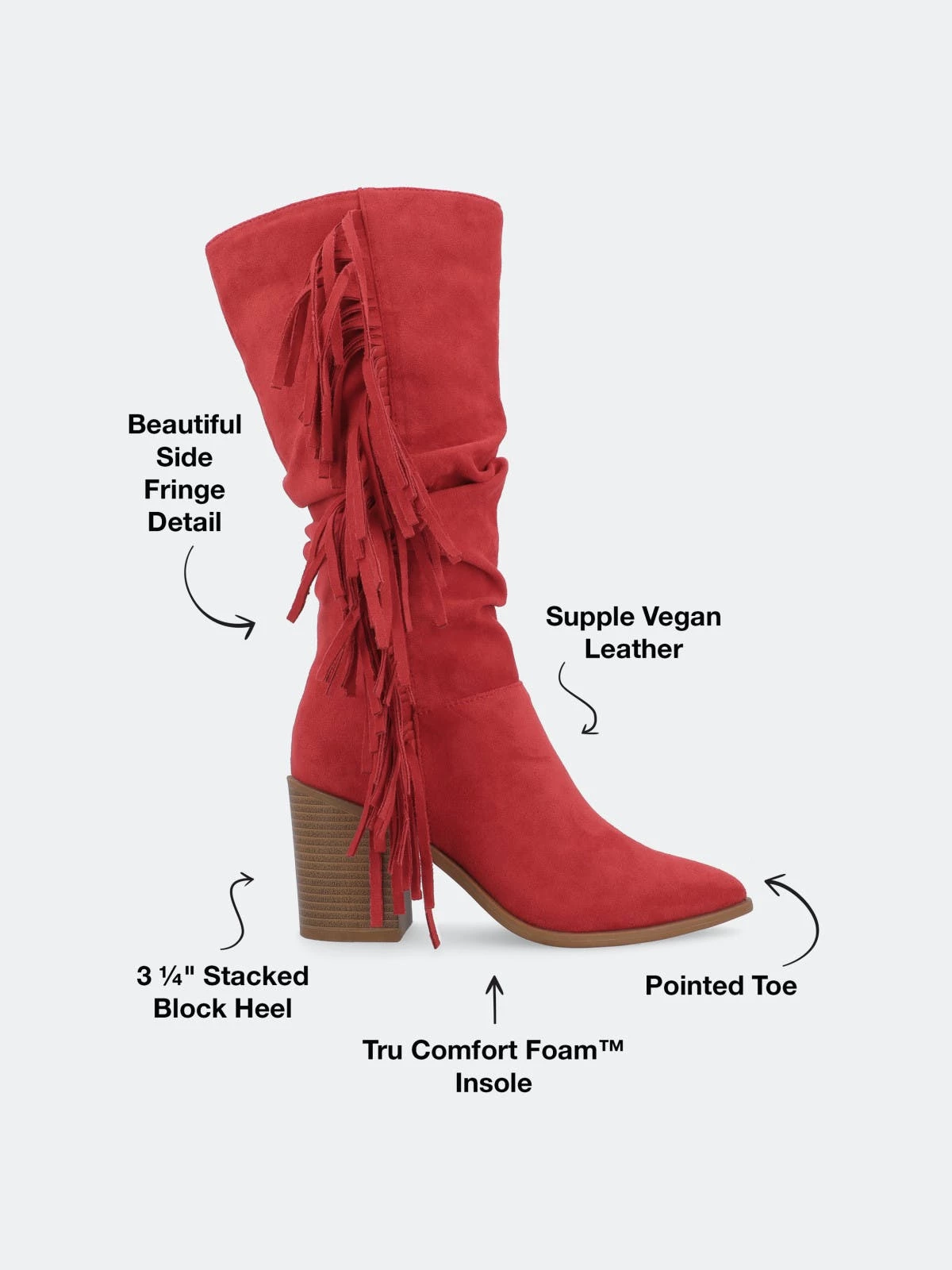 Proof that fringe is forever, the hartly boot by journee collection. This mid-calf boot features a pointed-toe paired with a stacked block heel for a classic cowgirl look. A zipper entry makes them easy to slip on and soft vegan leather lined with a 4 mm tru comfort foam™ insole makes them super comfy. At journee collection, this boot styles will have your outfit looking even better than before. They will give you that finishing touch that will have your outfit looking straight out of a magazine.