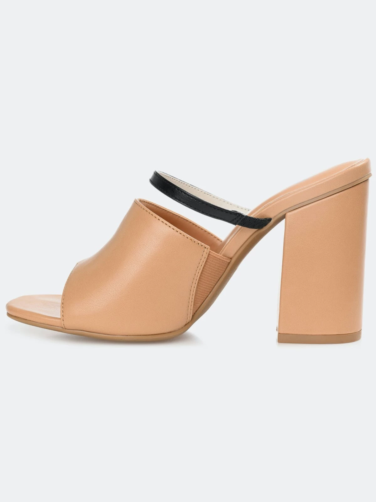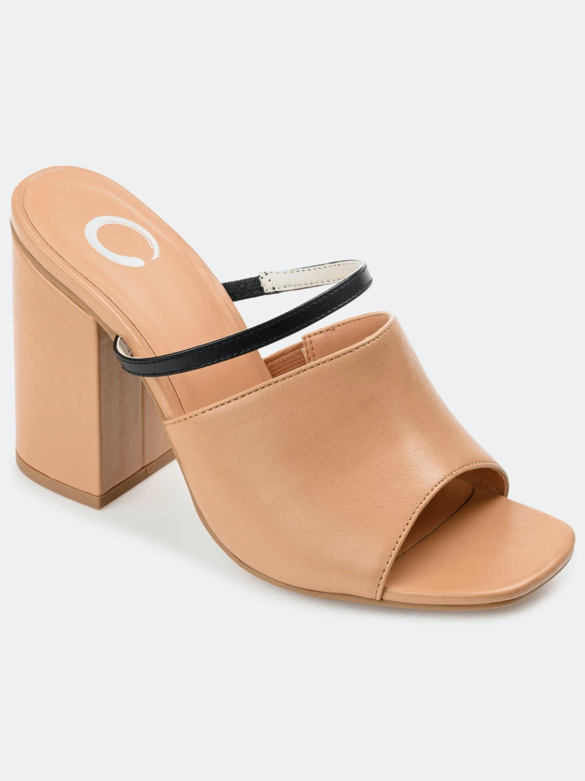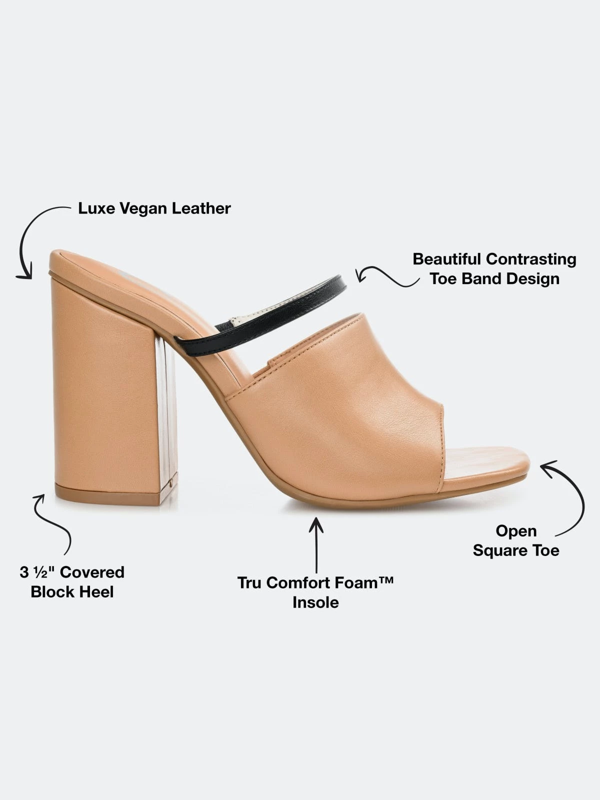 Flaunt your legs with the Heiddy by Journee Collection. This incredibly elegant pump has a slender strap accent and a covered block heel for a streamlined look. A 4 mm Tru Comfort Foam™ footbed and vegan leather uppers finish this airy open-toe silhouette.Heel Height:3 1/2-inchHeel Type: Block Heel Platform Height:Flat-inchShoe Width: MediumClosure Type: Slip-onStrap Type: Multi -StrapToe Style: OpenLining: Faux LeatherUpper Material: Vegan LeatherOutersole Material: Man-madeFootbed: 4 MM Tru Comfort Foam™All measurements are approximate and were taken using a size 6. Please note measurements may vary slightly by size.