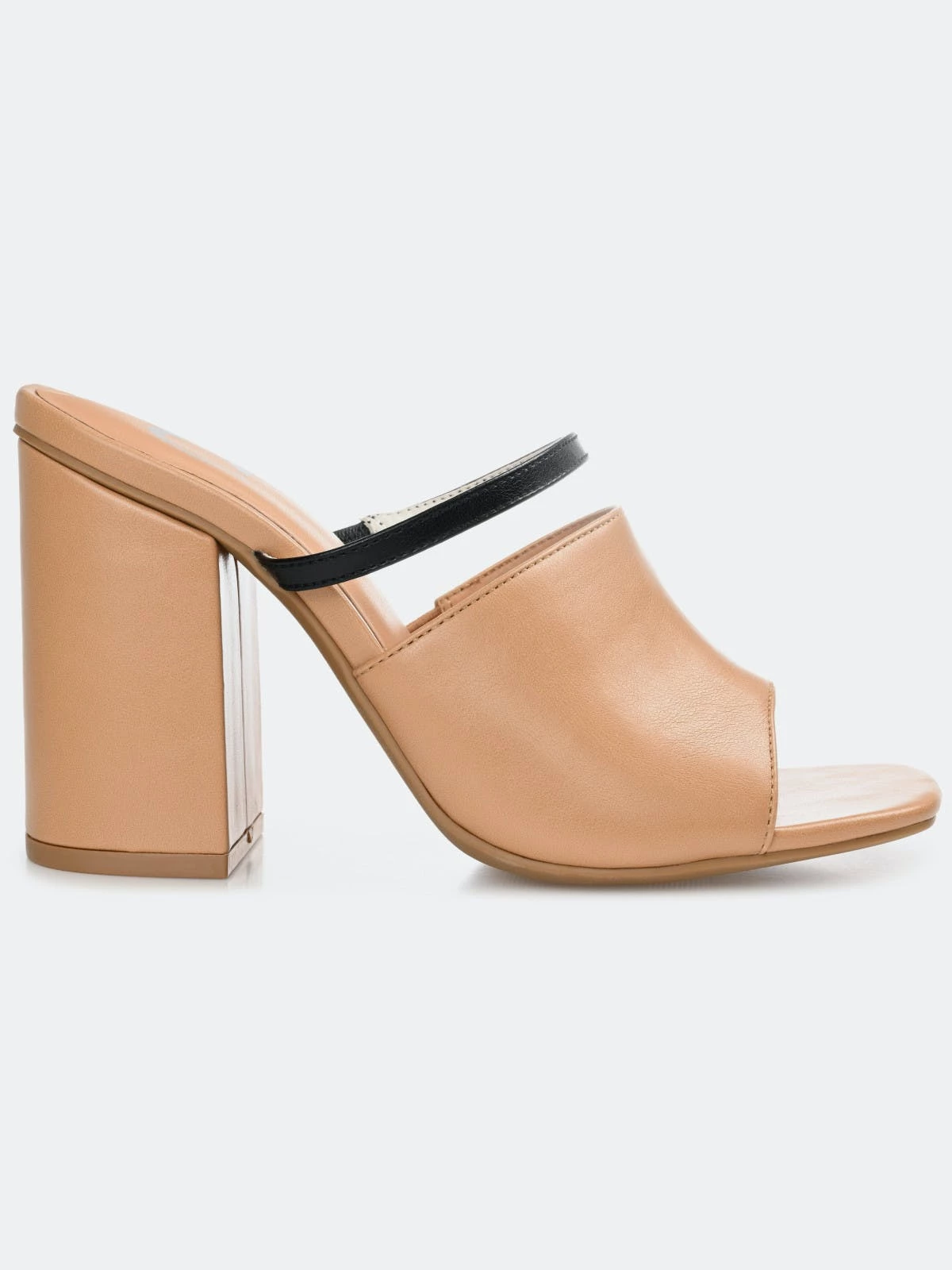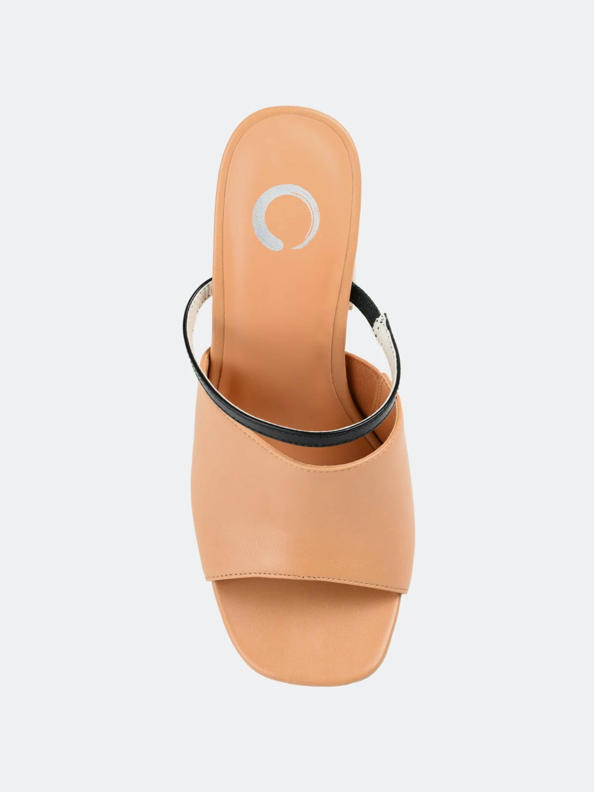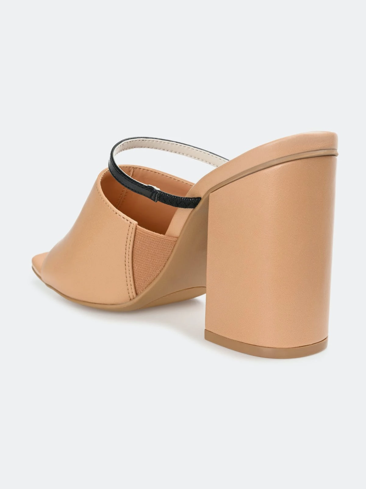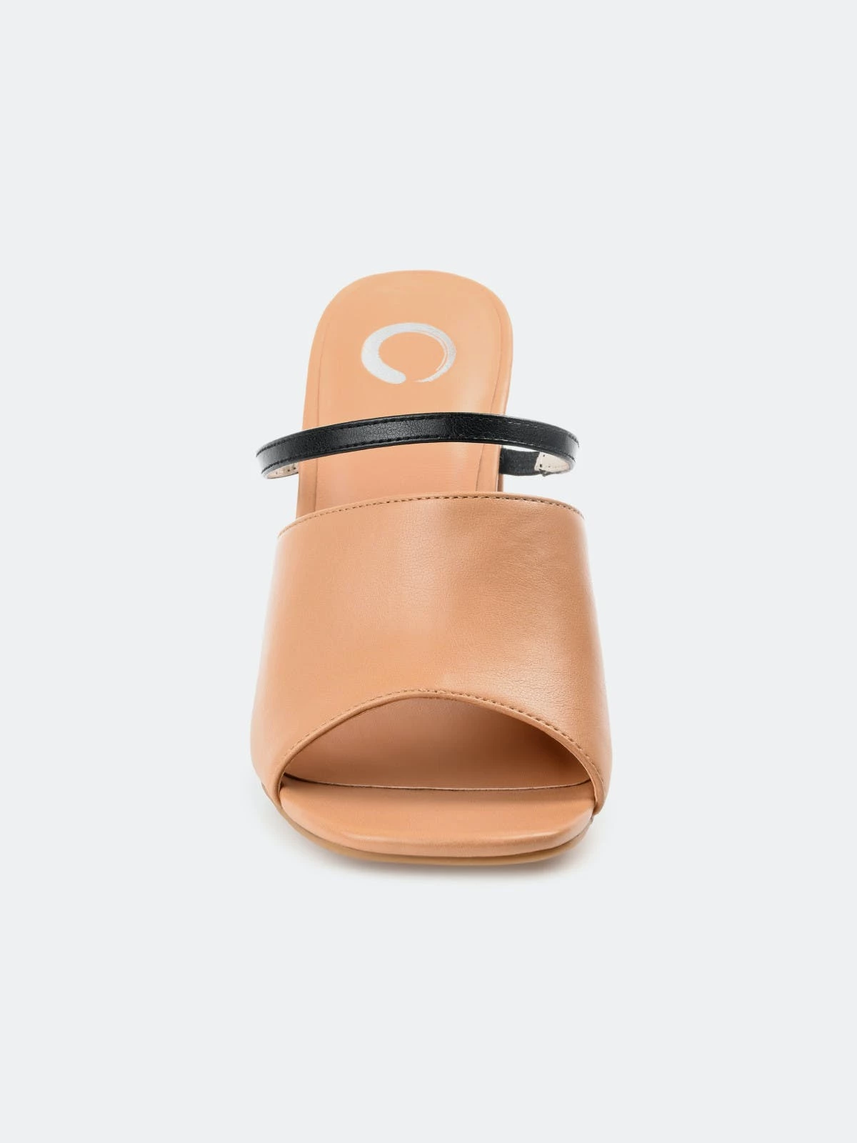 Flaunt your legs with the Heiddy by Journee Collection. This incredibly elegant pump has a slender strap accent and a covered block heel for a streamlined look. A 4 mm Tru Comfort Foam™ footbed and vegan leather uppers finish this airy open-toe silhouette.Heel Height:3 1/2-inchHeel Type: Block Heel Platform Height:Flat-inchShoe Width: MediumClosure Type: Slip-onStrap Type: Multi -StrapToe Style: OpenLining: Faux LeatherUpper Material: Vegan LeatherOutersole Material: Man-madeFootbed: 4 MM Tru Comfort Foam™All measurements are approximate and were taken using a size 6. Please note measurements may vary slightly by size.
