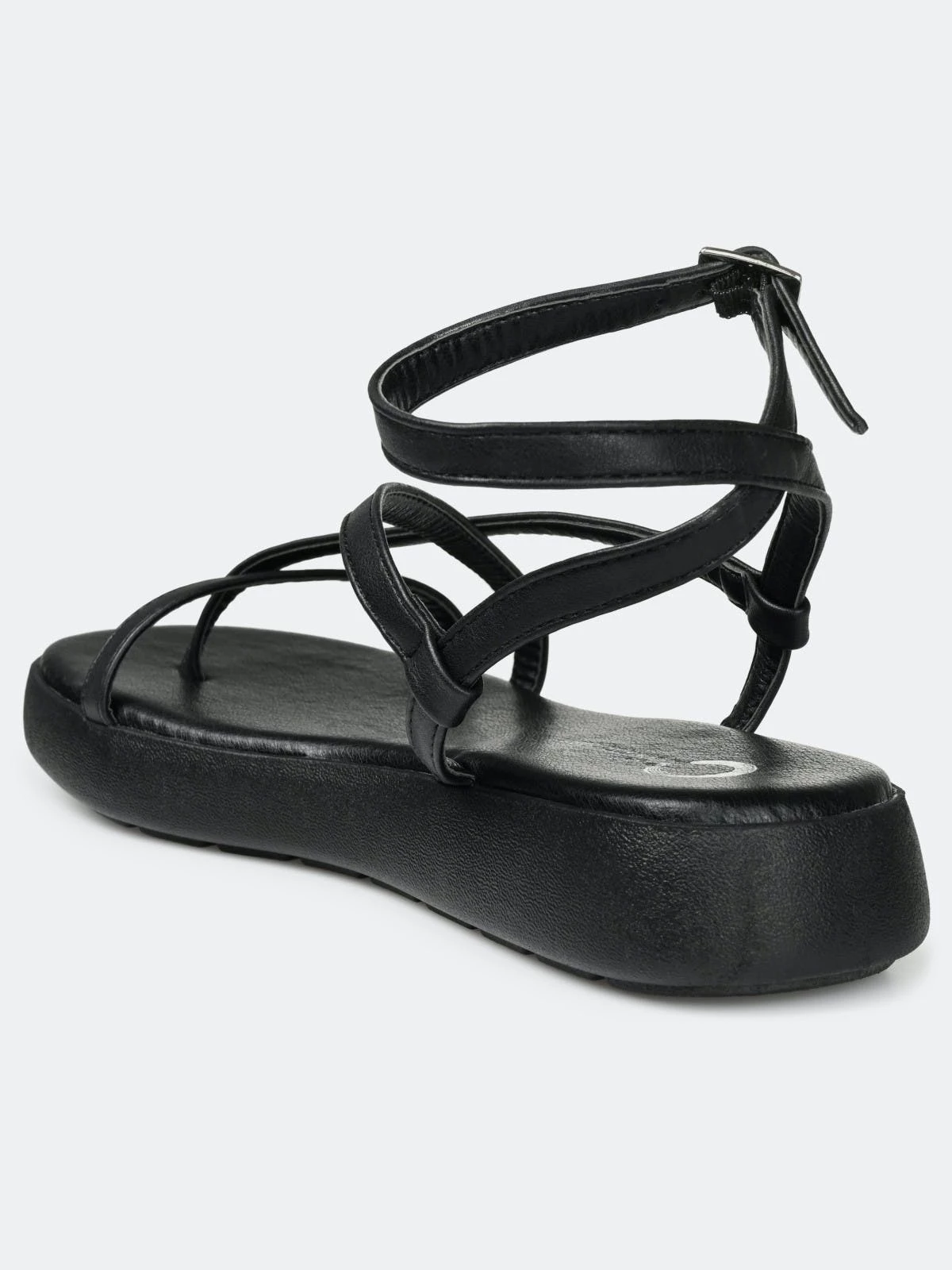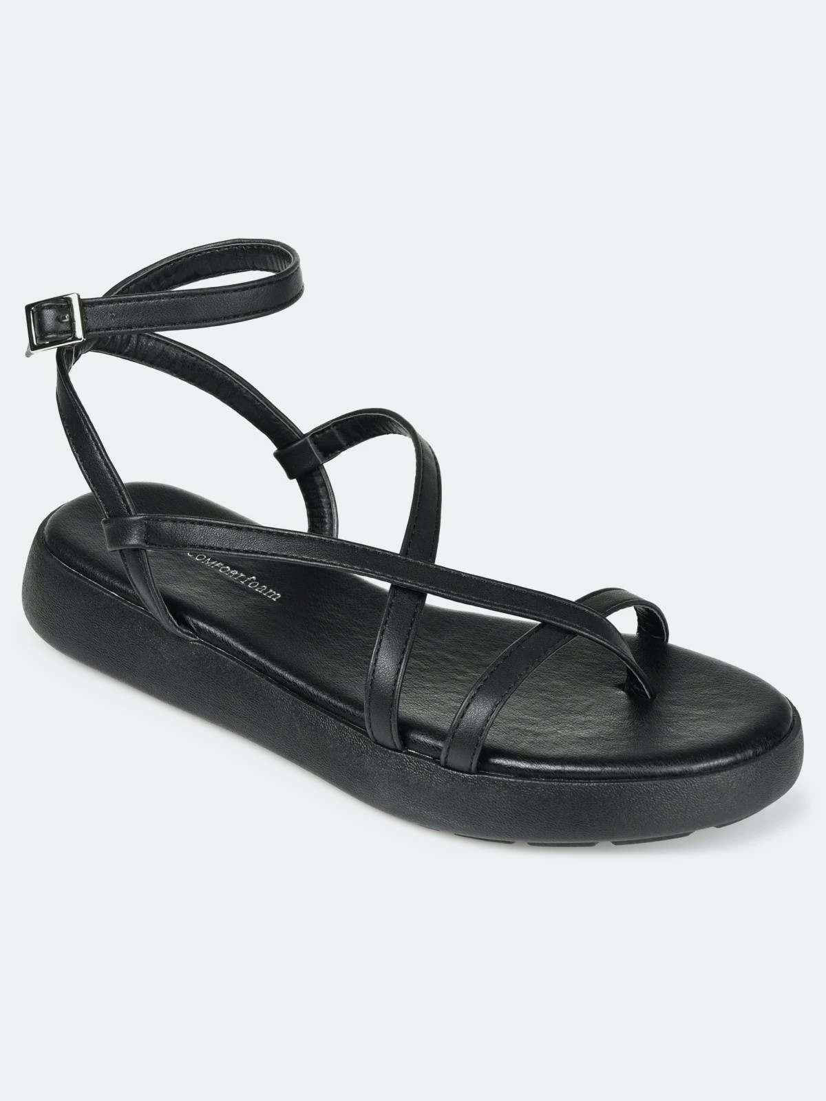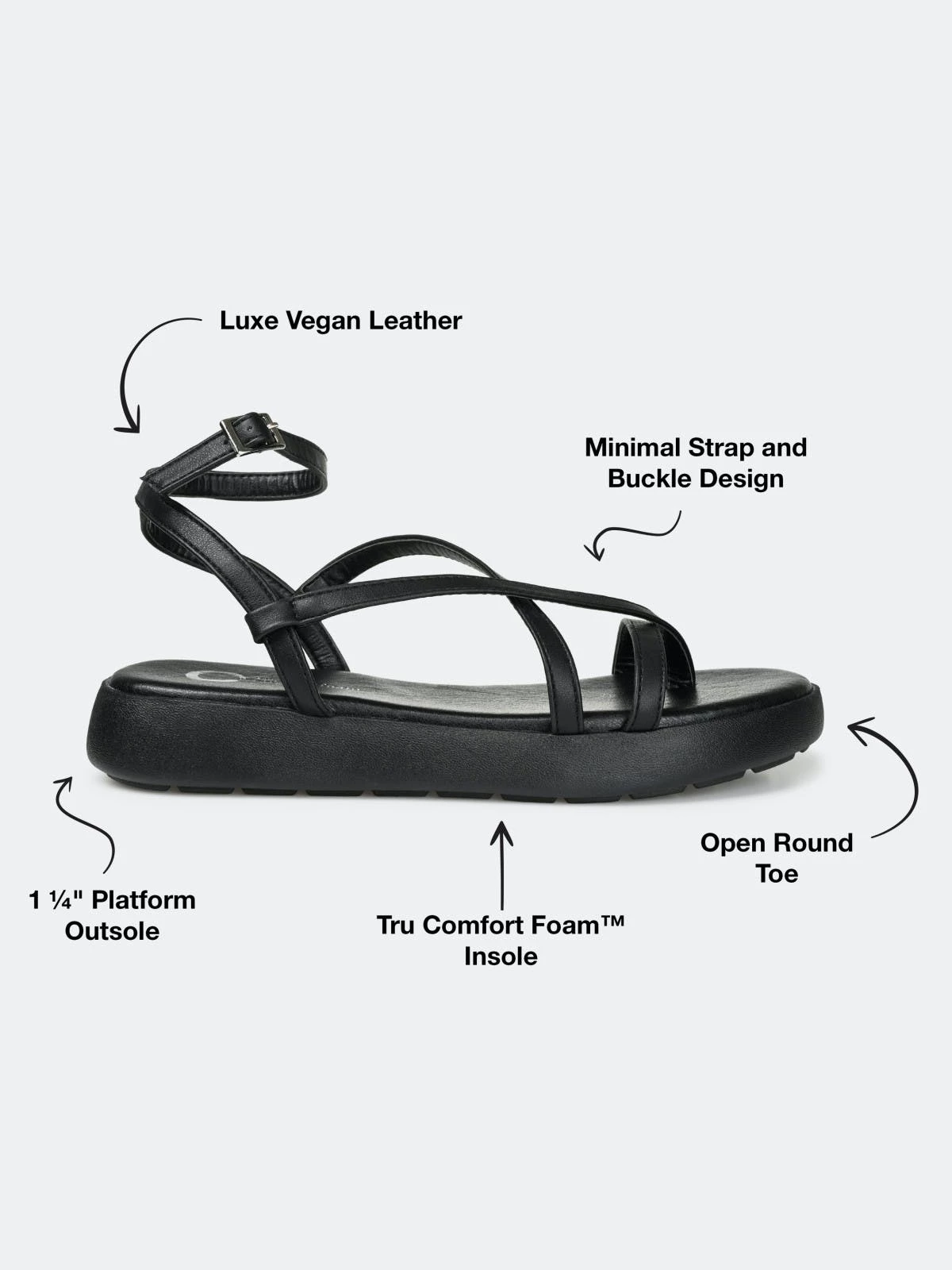 Make your summer a little more stylish with the Jeselia by Journee Collection. Vegan leather straps shape this adorable sandal. With an adjustable buckle strap and 4 mm Tru Comfort Foam™ footbed, you’ll be walking on sunshine every time you wear them.Heel Height:1 1/4-inchHeel Type: Sole Platform Height:1-inchShoe Width: MediumClosure Type: BuckleStrap Type: AnkleToe Style: OpenLining: Faux LeatherUpper Material: Vegan LeatherOutersole Material: Man-madeFootbed: 4 MM Tru Comfort Foam™All measurements are approximate and were taken using a size 6. Please note measurements may vary slightly by size.