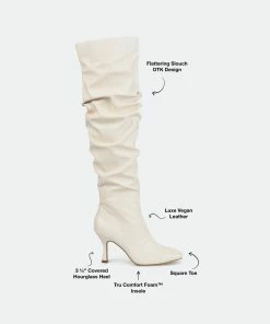 When you have places to go, the Kindy boot by Journee Collection always comes in handy. This slouchy boot features a contemporary square-toe, a 4 mm Tru Comfort Foam™ footbed, and supple vegan leather for a comfortable fit. A chic heel and a zipper on the inside finish this classic for a fresh take.Heel Height: 3 1/4-inch. Heel Type: Heel. Platform Height: Flat-inch. Shaft Height: 18 1/2 inches. Calf Circumference: 15 inches. Top Circumference: 16 inches. Shoe Width: Medium. Closure Type: Inside Zip. Toe Style: Square. Lining: Fabric. Upper Material: Vegan Leather. Outersole Material: Man-made. Footbed: 4 MM Tru Comfort Foam™. All measurements are approximate and were taken using a size 6. Please note measurements may vary slightly by size.