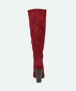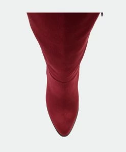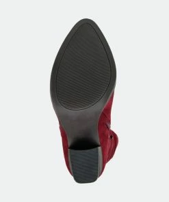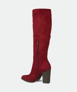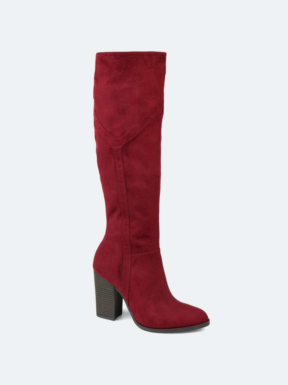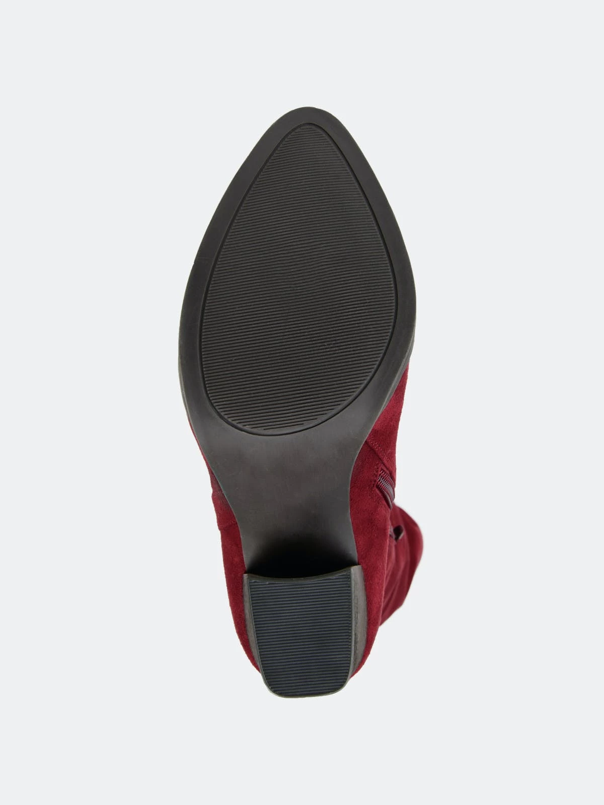 The Kyllie boot is extravagant and perfect for your fall and winter events. This boot features a soft faux suede material, an almond toe, and a tall chunky heel. The inside zipper helps with ease of access, and the knee-high design is slimming and fitted. The unique decorate detail on the outside of the boot creates a beautiful refreshing design.Heel Height: 3 3/4-inch. Heel Type: Stacked. Platform Height: 1/2-inch. Shaft Height: 15 1/2 inches. Calf Circumference: 14 1/2 inches. Top Circumference: 15 inches. Shoe Width: Medium. Closure Type: Inside Zip. Toe Style: Almond. Lining: Faux Fur. Upper Material: Faux Suede. Outersole Material: Man-made. Footbed: 4 MM Tru Comfort Foam™. All measurements are approximate and were taken using a size 6. Please note measurements may vary slightly by size.