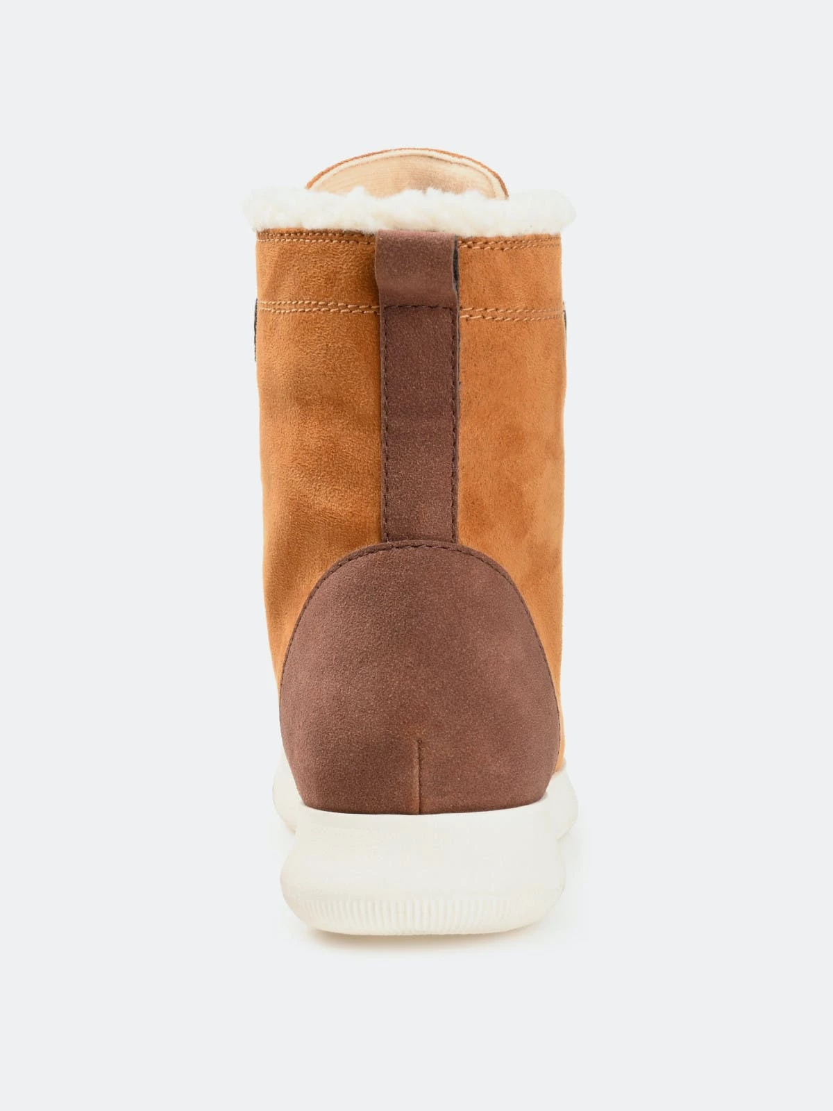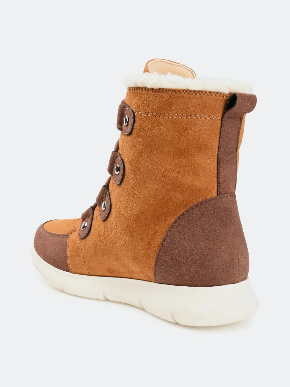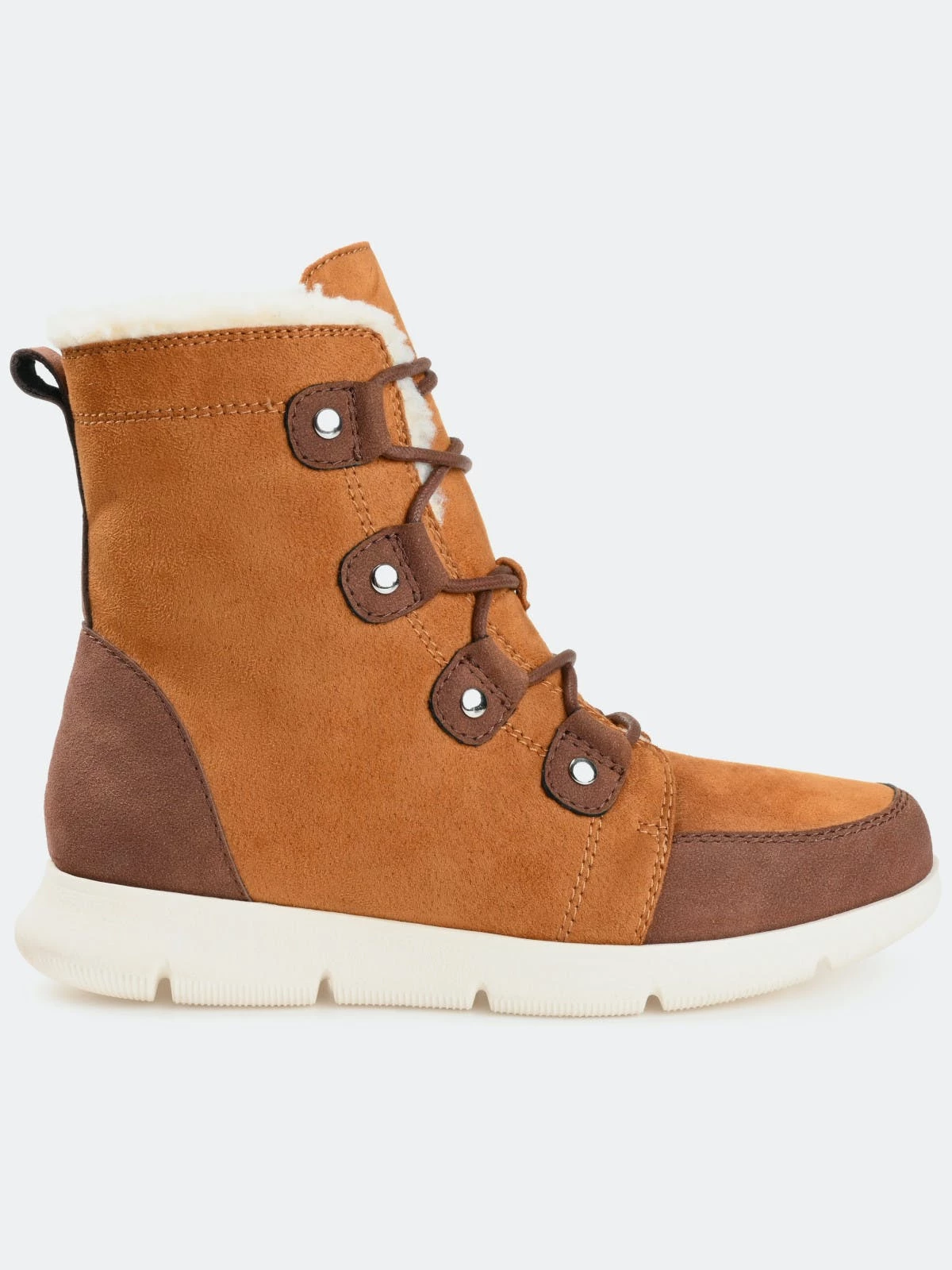 You’ll be set for the colder seasons with the Laynee boot by Journee Collection. This cozy winter style features supple vegan leather uppers lined with warm teddy bear fur. Two-toned details with a classic lace-up closure top the look, and a treaded sole paired with the softest 4 mm Tru Comfort Foam™ footbed completes the design.Heel Height: 1-inch. Heel Type: Sole. Platform Height: 1/2-inch. Shaft Height: 5 1/2 inches. Top Circumference: 11 inches. Shoe Width: Medium. Closure Type: Lace-up. Toe Style: Round. Lining: Faux Fur. Upper Material: Vegan Leather. Outersole Material: Man-made. Footbed: 4 MM Tru Comfort Foam™. All measurements are approximate and were taken using a size 6. Please note measurements may vary slightly by size.