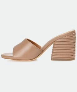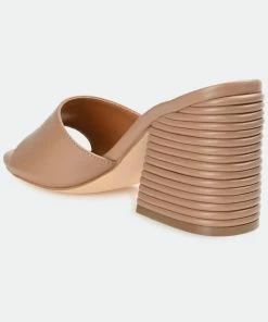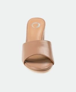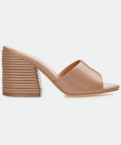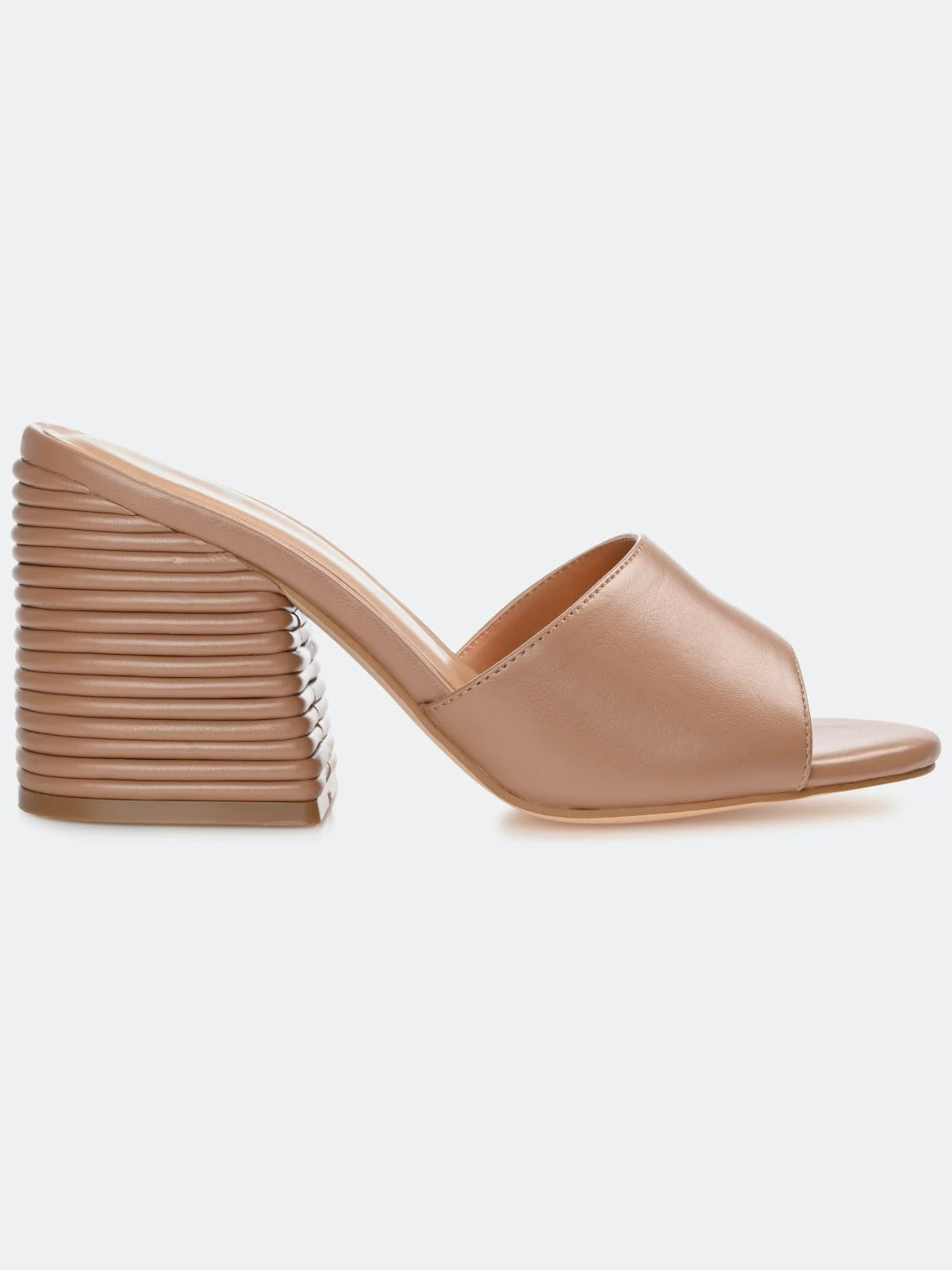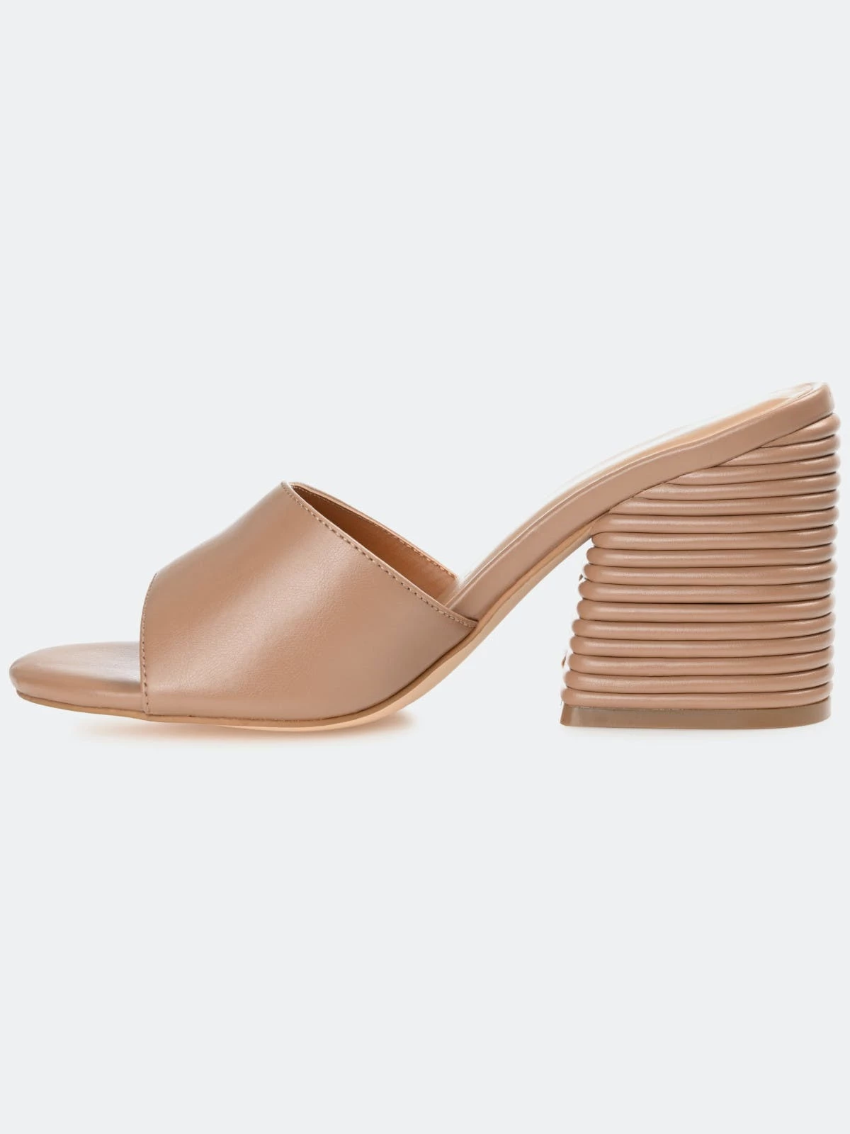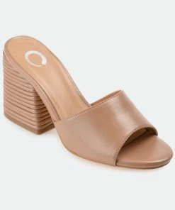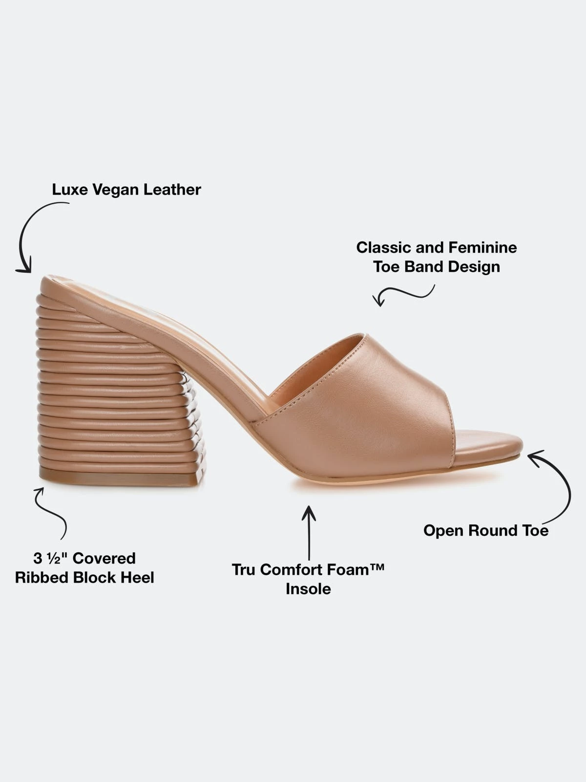 In this slip-on heel, you’ll be walking on easy street all season long. The Leslee by Journee Collection offers comfort and versatility with its lux vegan leather uppers coupled with a 4 mm Tru Comfort Foam™ insole. A simple band at the toe makes them easy to slip into, and a ribbed block heel adds an unexpected twist.Heel Height:3 1/2-inchHeel Type: Block Heel Platform Height:Flat-inchShoe Width: MediumClosure Type: Slip-onStrap Type: Toe StrapToe Style: OpenLining: Faux LeatherUpper Material: Vegan LeatherOutersole Material: Man-madeFootbed: 4 MM Tru Comfort Foam™All measurements are approximate and were taken using a size 6. Please note measurements may vary slightly by size.