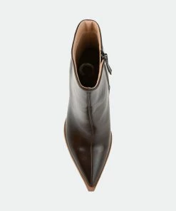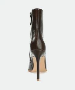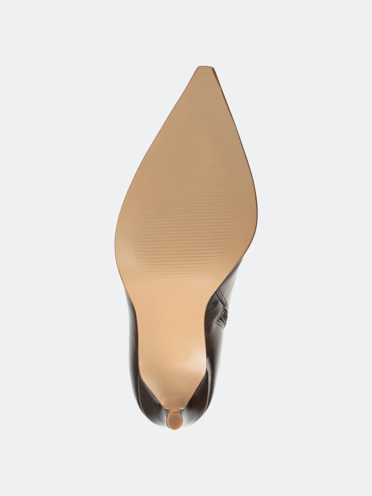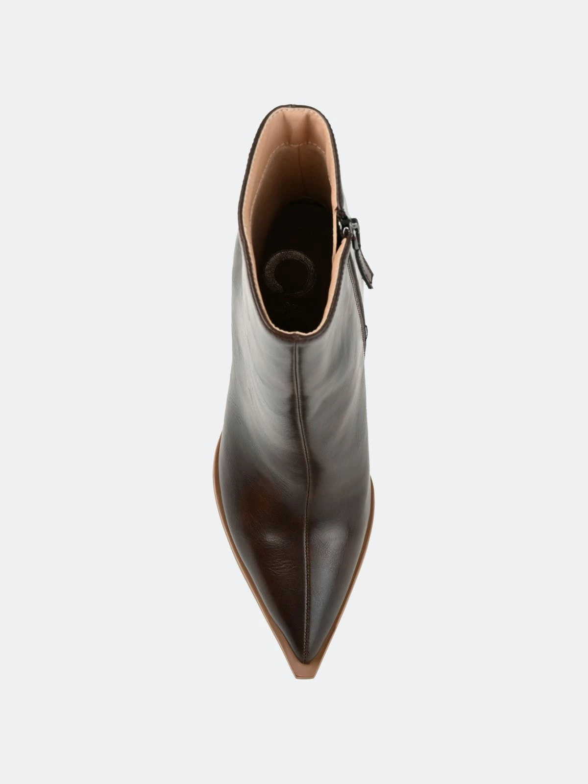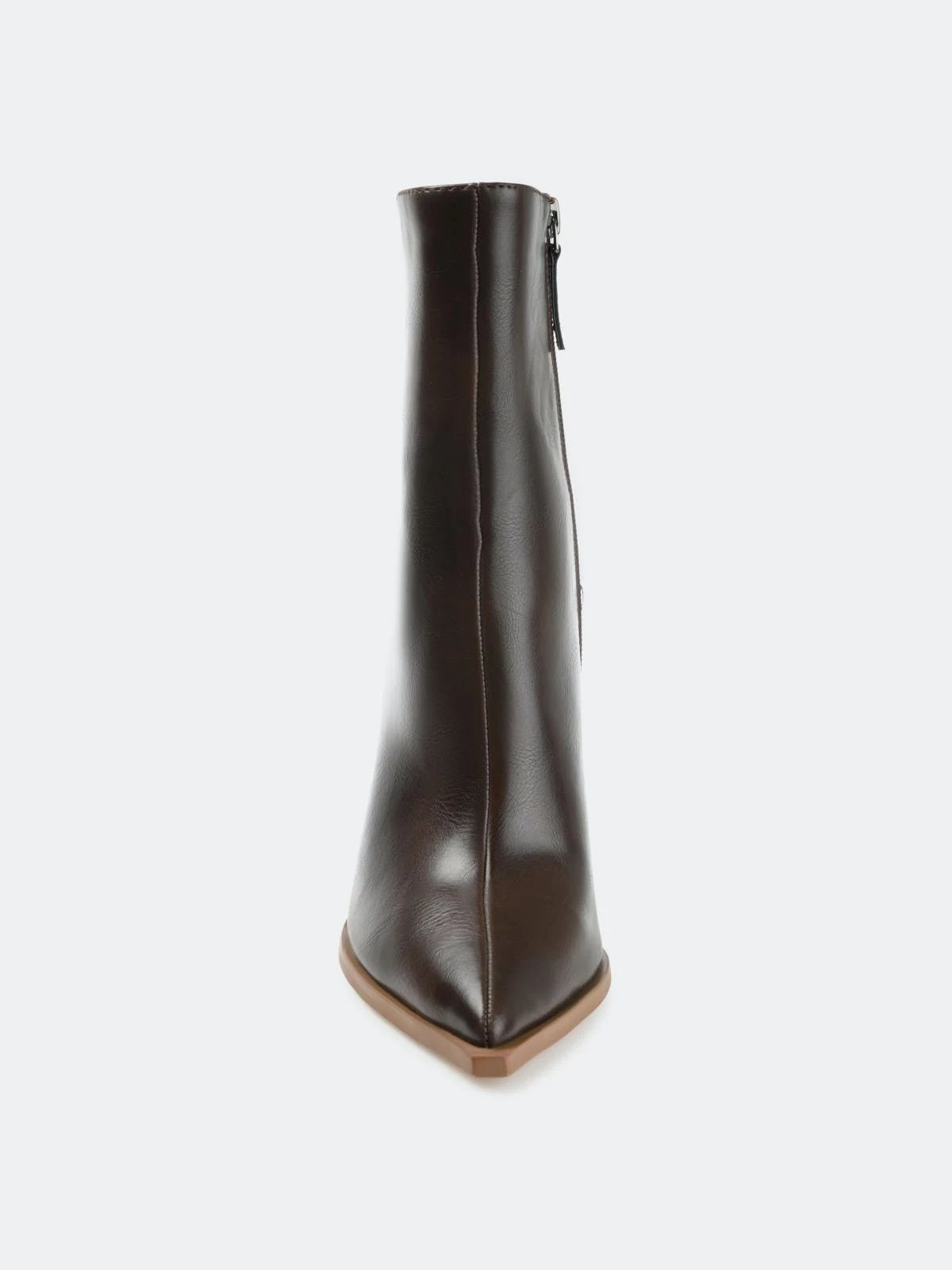 The stunning beauty you need for the season the Limma bootie by Journee Collection. This flattering vegan leather stiletto offers a sultry look with its pointed-toe and a high-ankle silhouette. A zipper entry and 4 mm Tru Comfort Foam™ insole make this look easy to slip on and stand-in.Heel Height:4 1/4-inchHeel Type: Stiletto Platform Height:Flat-inchShaft Height:5 1/2 inchesTop Circumference:10 1/2 inchesShoe Width: MediumClosure Type: Inside ZipToe Style: PointedLining: Man-madeUpper Material: Vegan LeatherOutersole Material: Man-madeFootbed: 4 MM Tru Comfort Foam™All measurements are approximate and were taken using a size 6. Please note measurements may vary slightly by size.