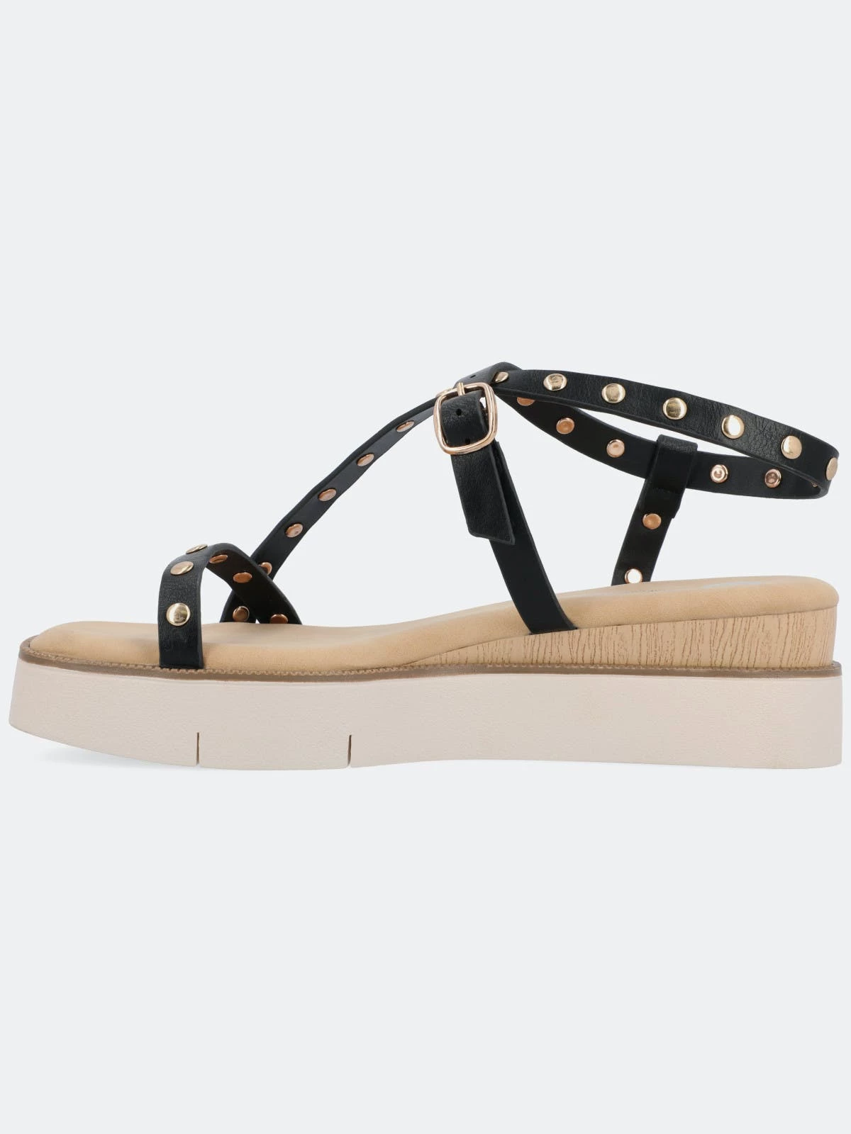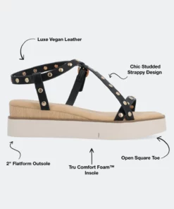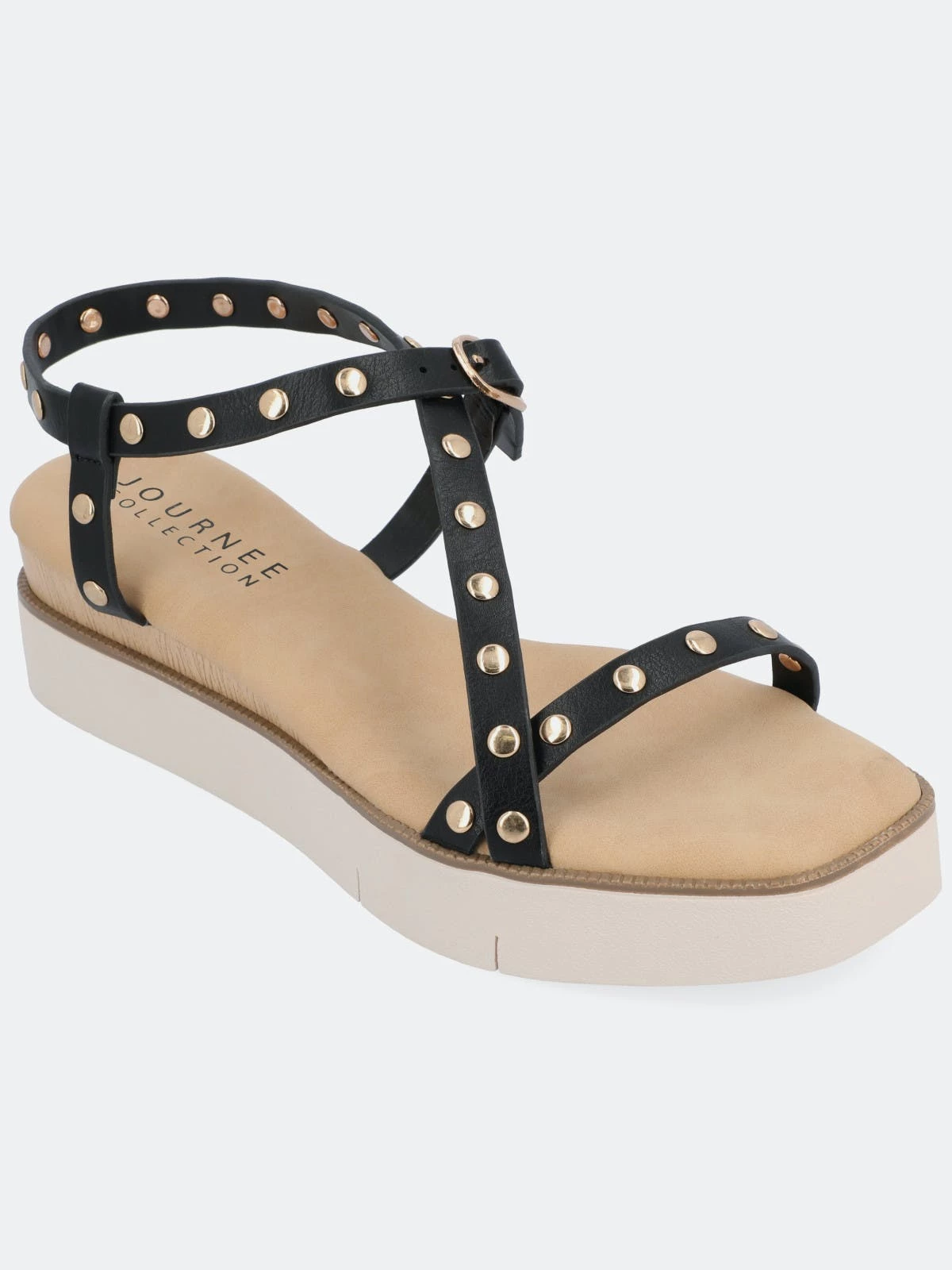The Lindsay platform sandal from Journee Collection will be the perfect shoe to take you around town in style. Their flexible outsole, buckle, ankle crossover strap design, and open round toe will be the best combination to take you anywhere you want to go without the fear of wearing the wrong shoes. As a bonus, their 4 mm Tru Comfort Foam™ insole will keep your feet comfortable while walking around.A sandal that will keep your feet stylish and comfortable for all your daily errands.