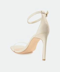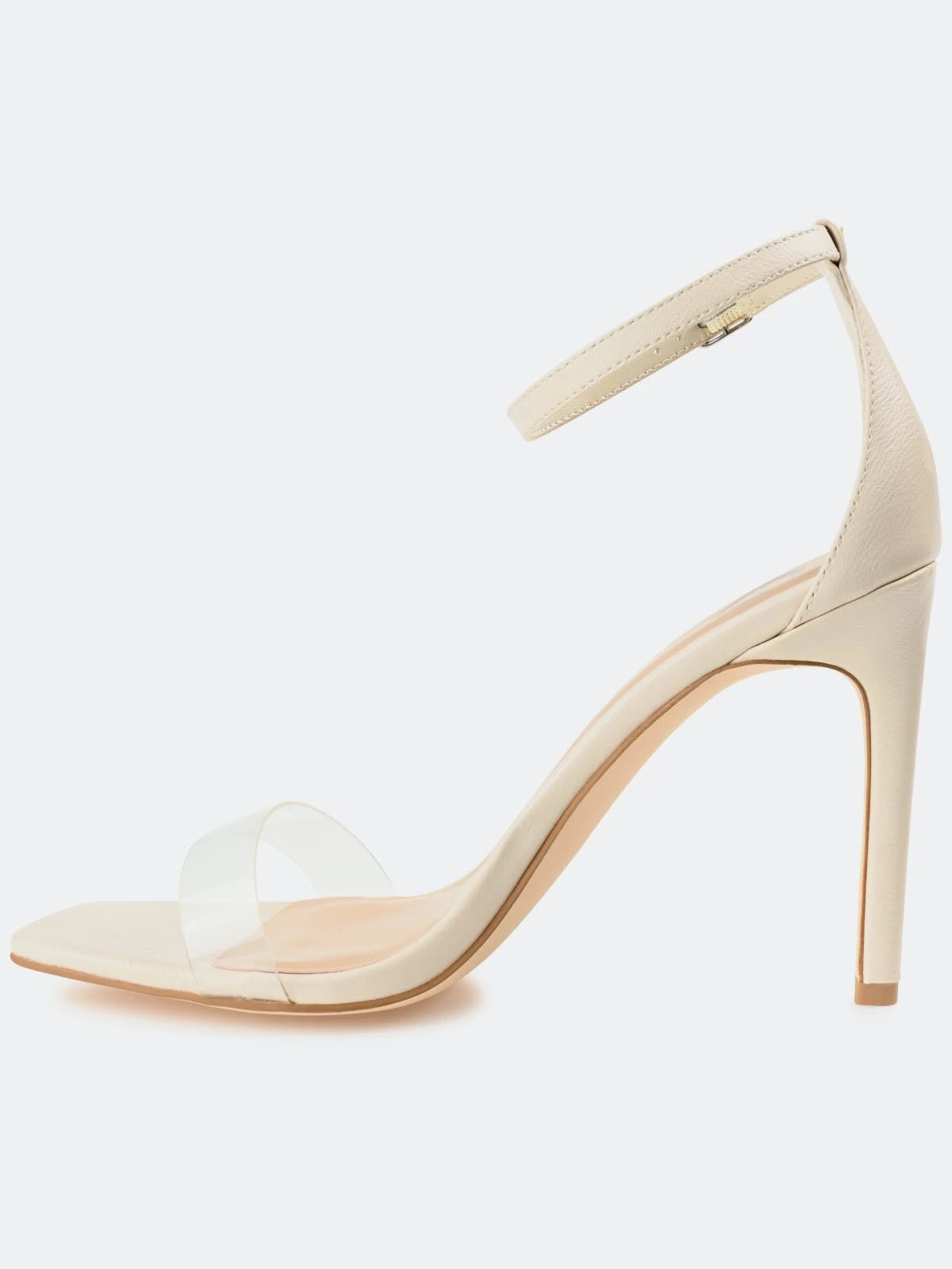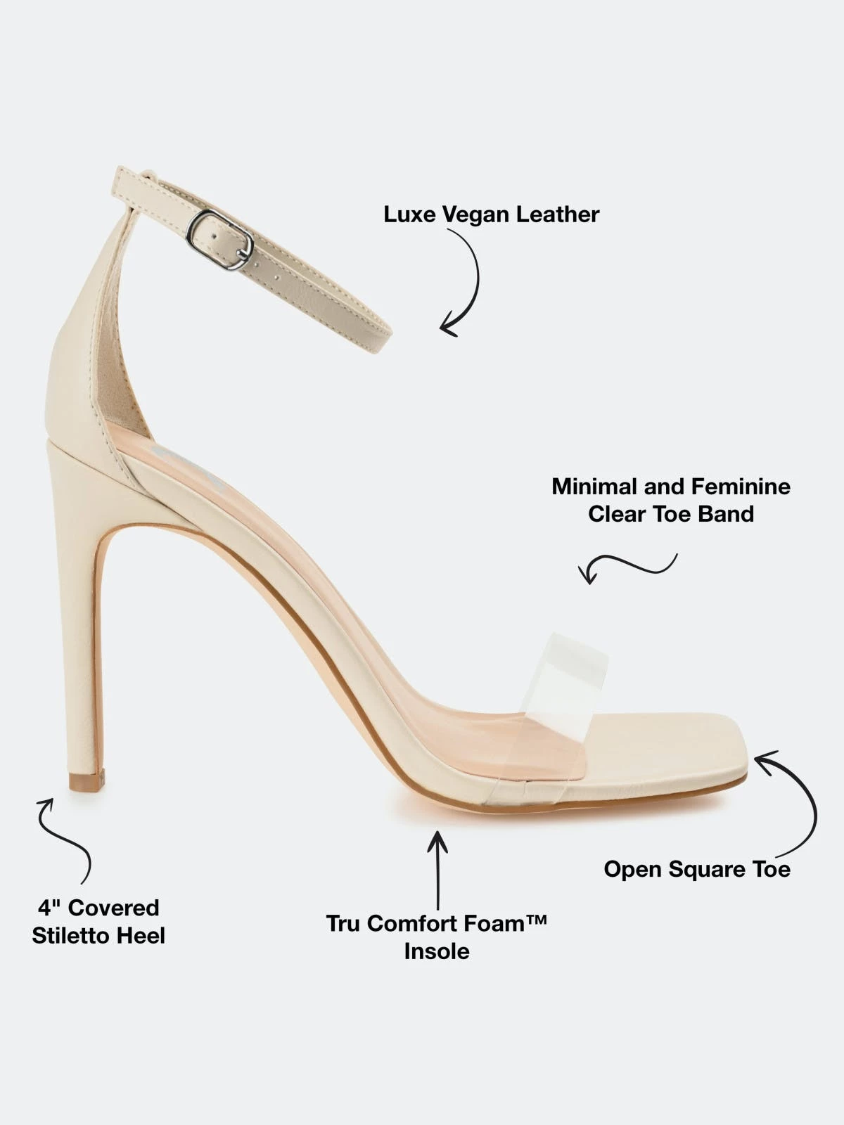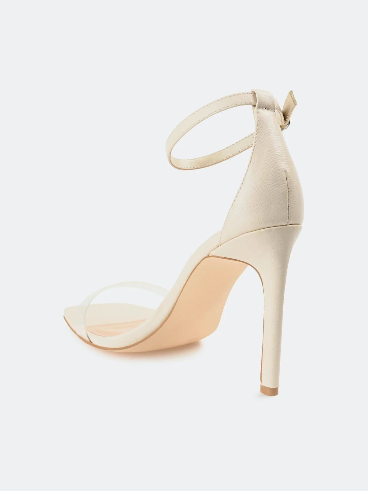 A wearable take on Cinderella’s glass slipper. The Lorelei heels by Journee Collection feature soft man-made materials and a 4 mm Tru Comfort Foam™ footbed that keep you dancing comfortably long after midnight. The clear vinyl strap and stiletto heel make this design fit for a princess.Heel Height:4-inchHeel Type: Stiletto Platform Height:Flat-inchShoe Width: MediumClosure Type: BuckleStrap Type: AnkleToe Style: OpenLining: Man-madeUpper Material: Man-madeOutersole Material: Man-madeFootbed: 4 MM Tru Comfort Foam™All measurements are approximate and were taken using a size 6. Please note measurements may vary slightly by size.