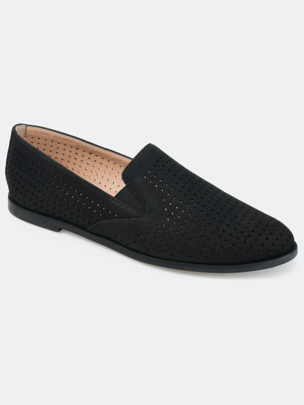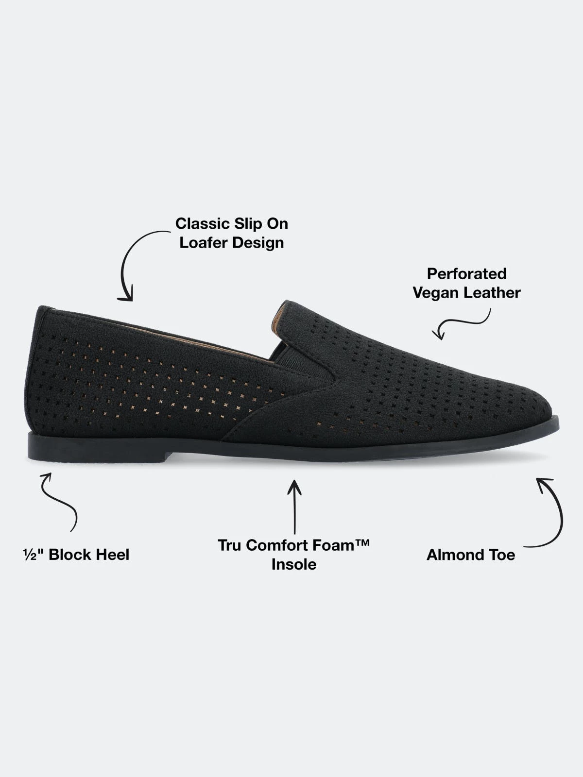 This sophisticated look is detailed with our signature 4mm Tru Comfort Foam™ footbed for all-day support. The Lucie by Journee Collection is a loafer flat elevated by a 1/2 inch block heel. Vegan leather uppers, twin notches at the sides, and round perforations finish the design. At Journee Collection, our flat styles will have you looking just as professional as the boss at work to having the cutest shoes when you go out for the night.