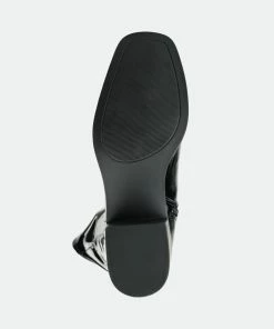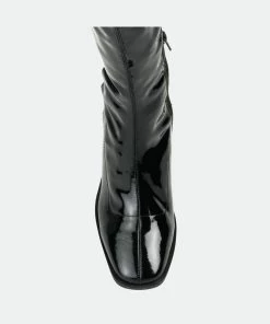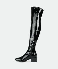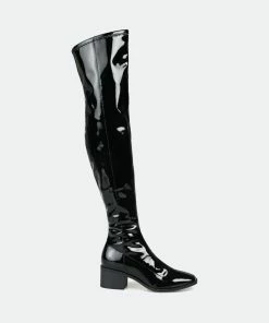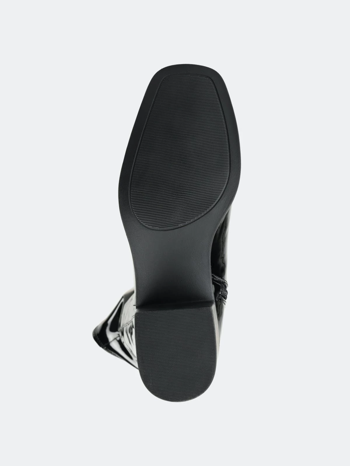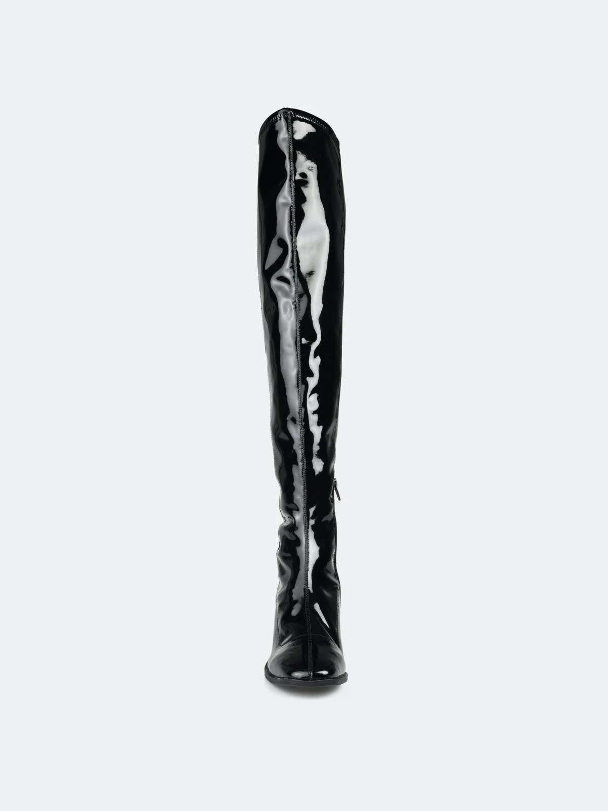 The epitome of bold style, the Mariana by Journee Collection. With stretchy vegan leather uppers and a 4 mm Tru Comfort Foam™ footbed, this thigh-high style will make you feel as good as you look. A square-toe shapes the look, and a chunky block heel adds the right amount of height.Heel Height: 2-inch. Heel Type: Block Heel. Platform Height: Flat-inch. Shaft Height: 21 1/2 inches. Calf Circumference: 12 3/4 inches. Top Circumference: 14 3/4 inches. Shoe Width: Medium. Closure Type: Inside Zip. Toe Style: Square. Lining: Fabric. Upper Material: Vegan Leather. Outersole Material: Man-made. Footbed: 4 MM Tru Comfort Foam™. All measurements are approximate and were taken using a size 6. Please note measurements may vary slightly by size.