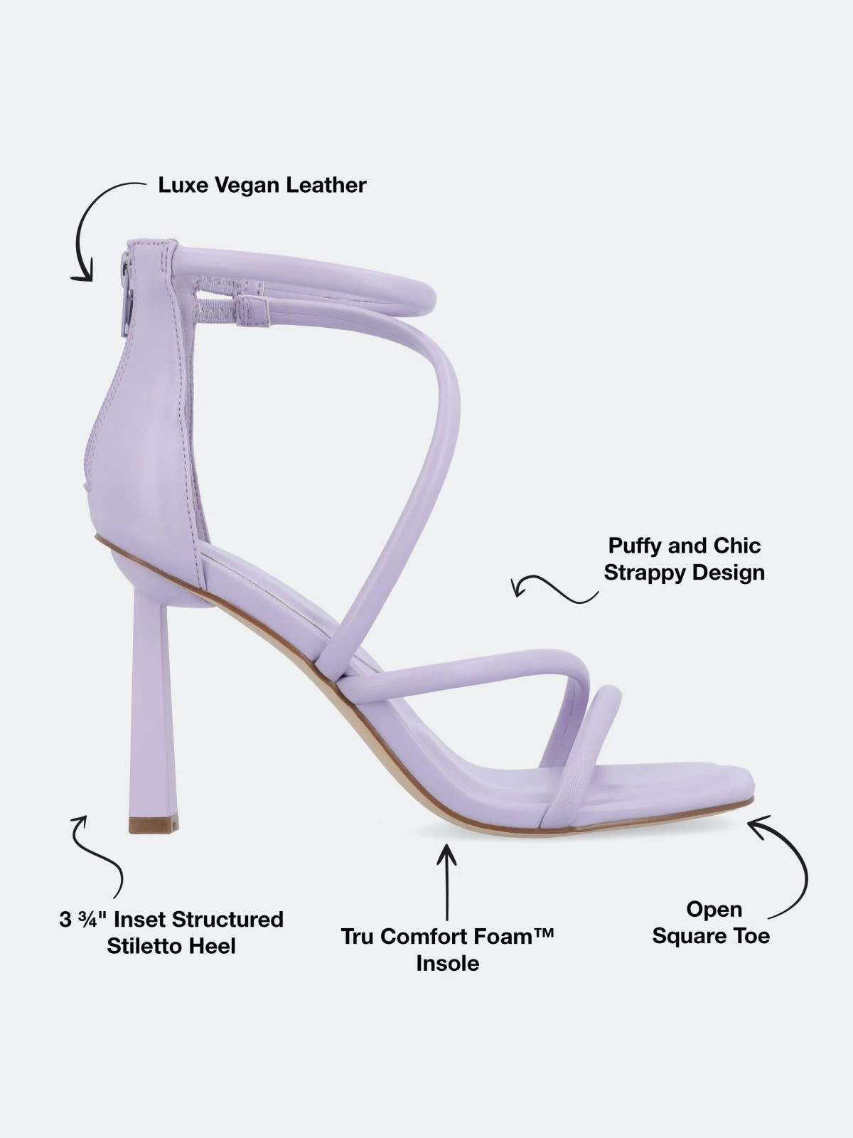Marza stiletto heels from journee collection will have you walking around getting compliments everywhere you go. this look might become your new favorite with their luxe vegan leather, light puff straps, and back zip entry. As a bonus, their 5 mm tru comfort foam™ insole and open square toe will leave your feet doing the happy dance for how comfortable they will feel.