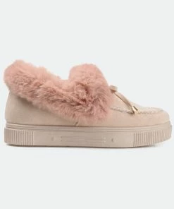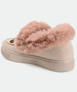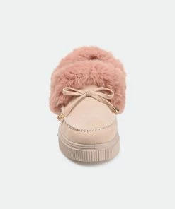 We designed this lounge friendly slipper with a bow tie accent and fluffy faux fur trim for a playful twist. The Midnight by Journee Collection is a moc-toe vegan suede design lined with a 4 mm Tru Comfort Foam™ footbed for a cozy fit. A thick rubber sole provides durability and allows this soft silhouette to last.Heel Height: 1 1/4-inch. Heel Type: Sole. Platform Height: 1 1/4-inch. Shoe Width: Medium. Closure Type: Slip-on. Toe Style: Round. Lining: Faux Fur. Upper Material: Vegan Leather. Outersole Material: Rubber. Footbed: 4 MM Tru Comfort Foam™. All measurements are approximate and were taken using a size 6. Please note measurements may vary slightly by size.