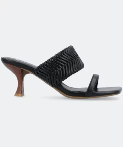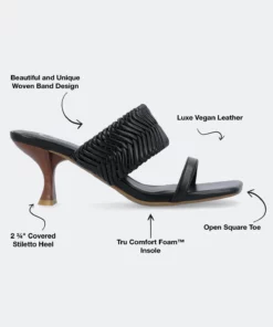 This Monyka stiletto heel from Journee Collection will be the comfiest heel you’ve ever put on with their 4 mm tru comfort foam™ insole. As well as comfort, you will have all the style you could dream of with their luxe vegan leather, woven band mule style, and open square toe. to keep it simple, they’re slip-on, perfect for last-minute plans when you have to rush out the door.