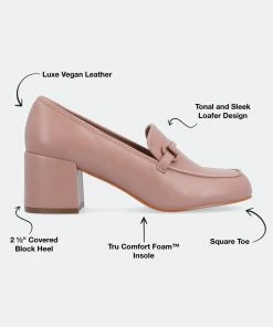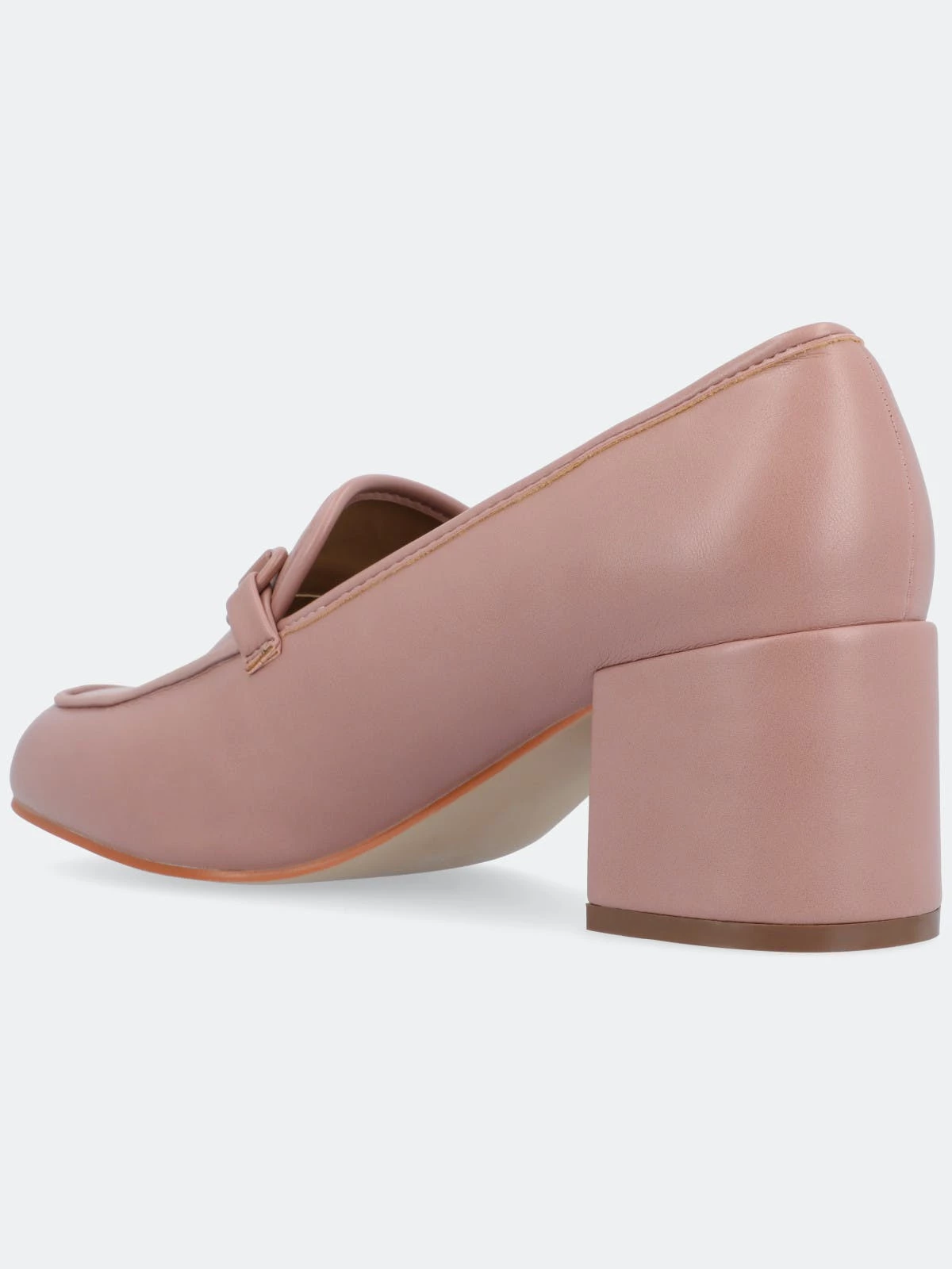 The Nysaa heels from Journee Collection will make you feel comfortable and stylish. With their 4 mm Tru Comfort Foam™ insole, luxe vegan leather, hardware detail, and covered block heel, this style is effortless but chic. They have a lovely loafer style, slip-on feature, and soft square toe so that you can pair them with a variety of outfits.